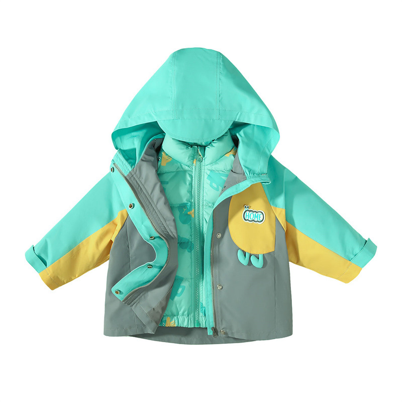 [3방 벨벳 재킷] Tongbei 아동복 2024 겨울 신작 아동 대비색 따뜻한 다운 재킷