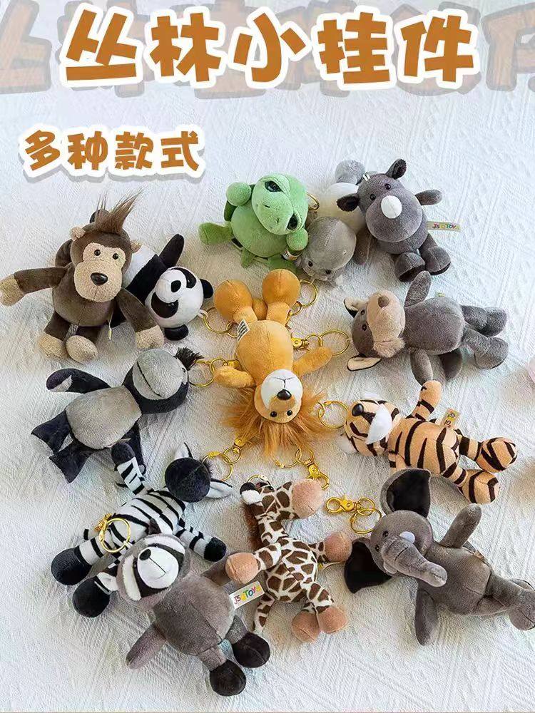 숲 동물 기린 코끼리 사자 원숭이 개 호랑이 키 체인 가방 펜던트 어린이 생일 봉제 장난감스토어 가기