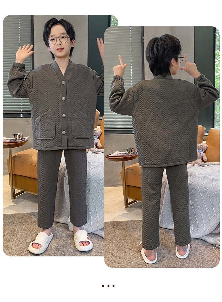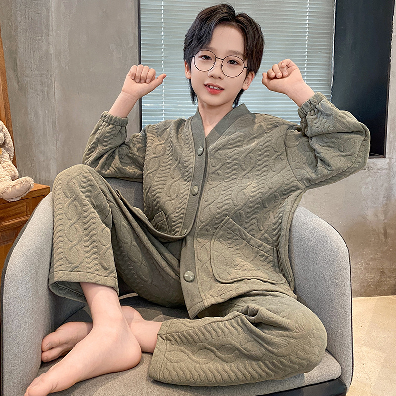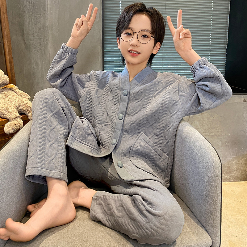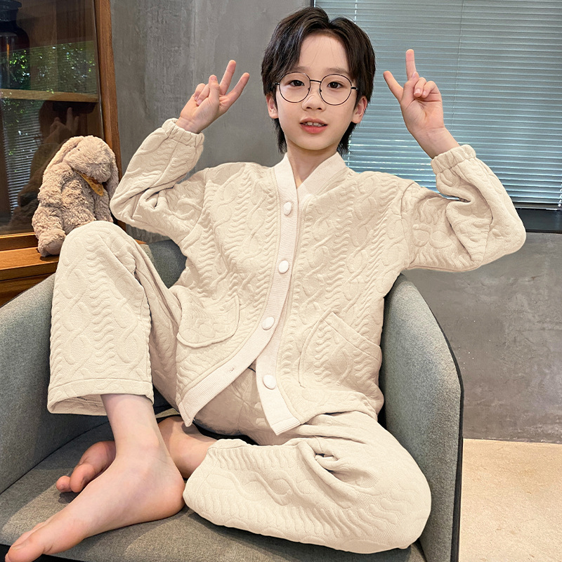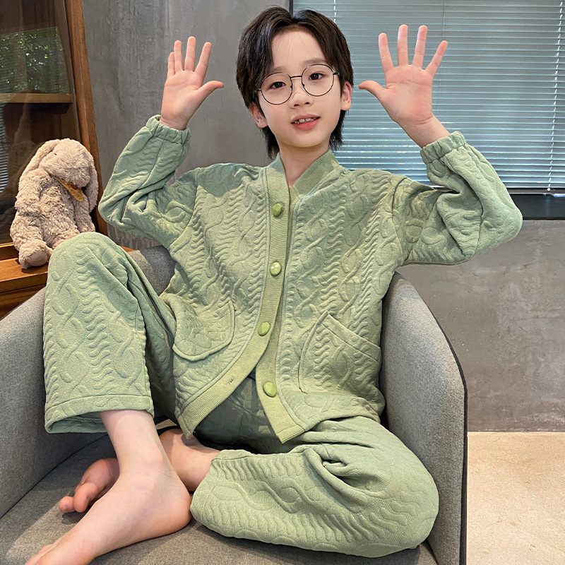 2024 겨울 새 시즌 소년 잠옷 봄 가을과 겨울 공기 면 긴 소매 소년의 홈 의류 세트 단색 캐주얼