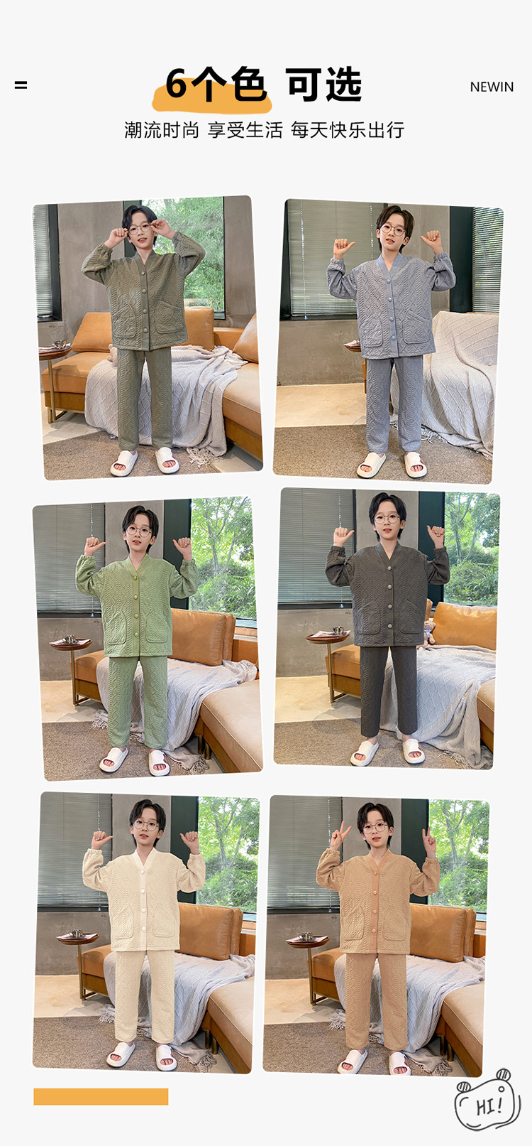 2024 겨울 새 시즌 소년 잠옷 봄 가을과 겨울 공기 면 긴 소매 소년의 홈 의류 세트 단색 캐주얼스토어 가기