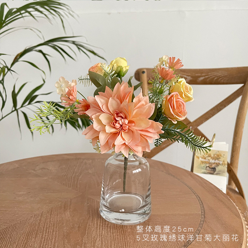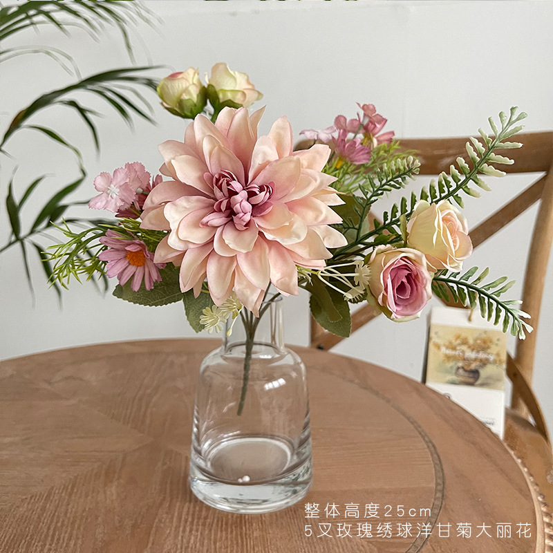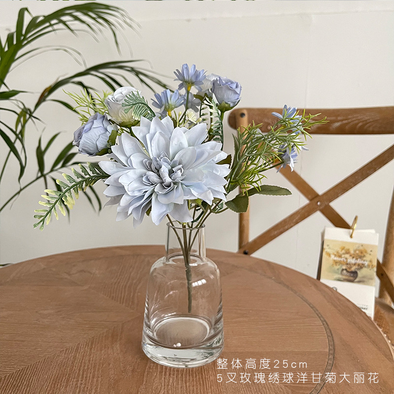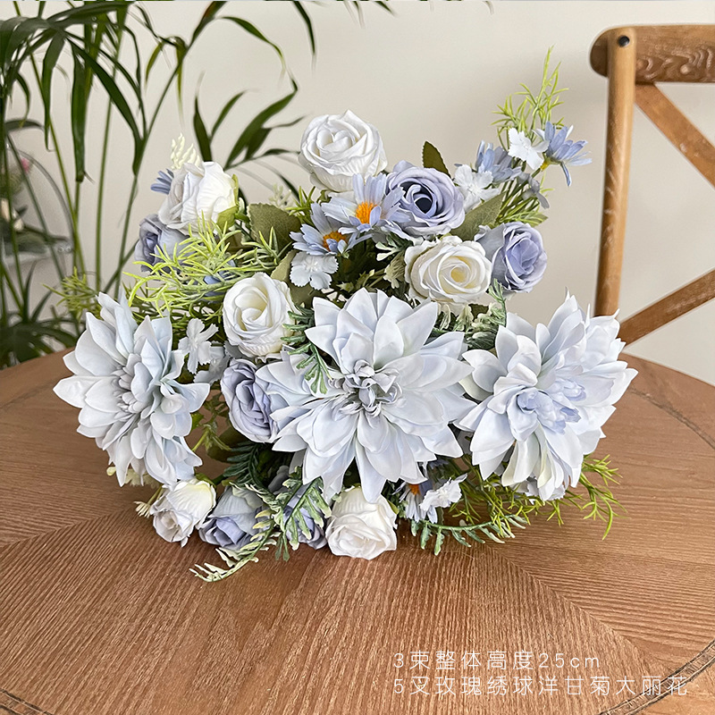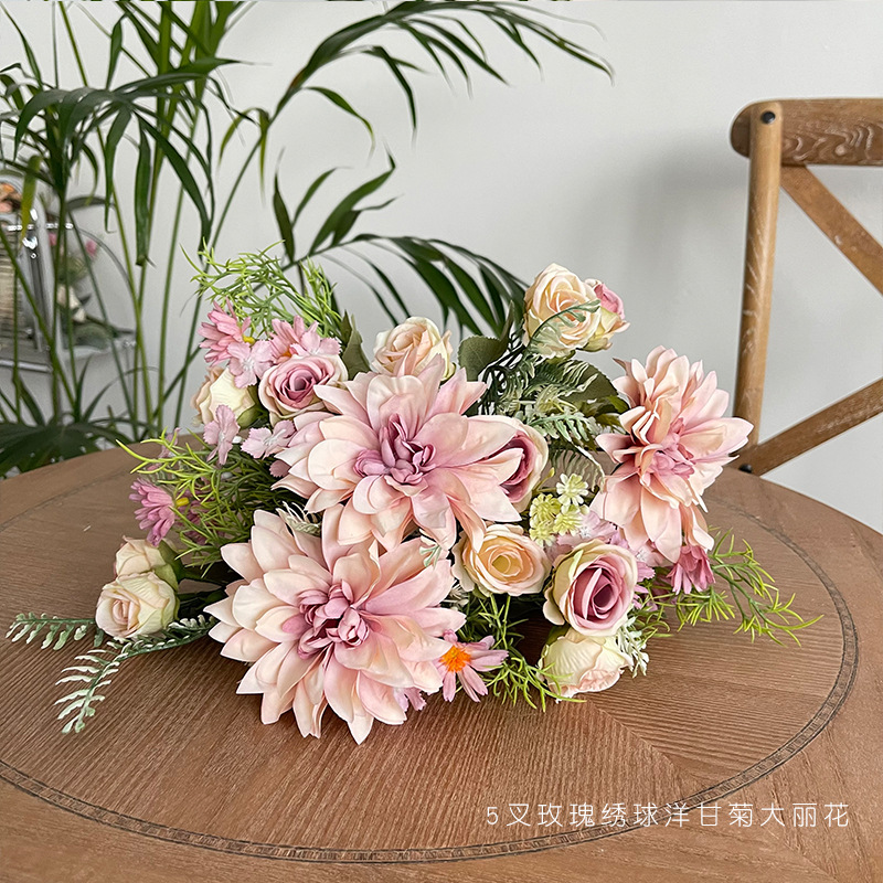 간단한 신선한 장미 수국 웨딩 룸 침대 머리 꽃 가짜 꽃 식물 재배 데스크탑 식물 재배 파티 장식 꽃 진자