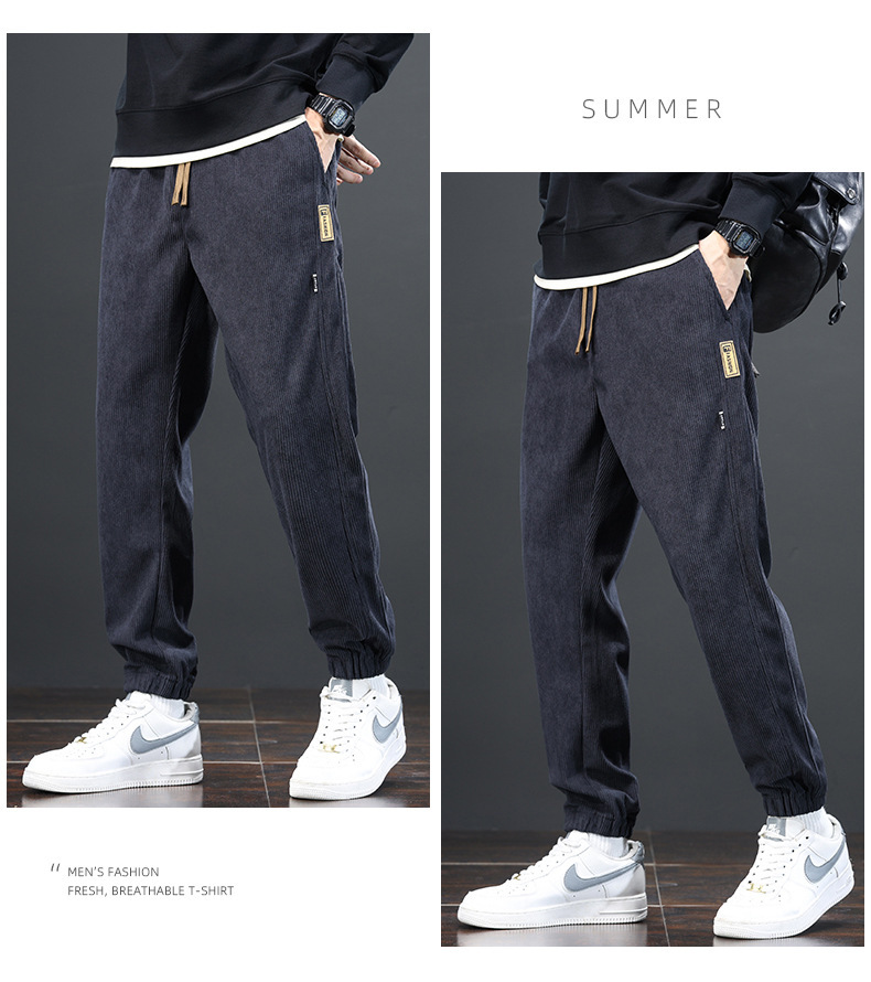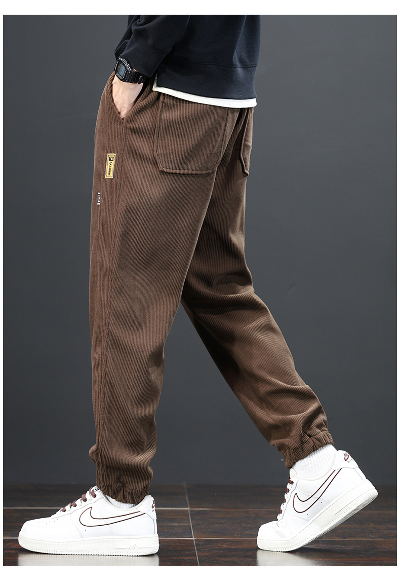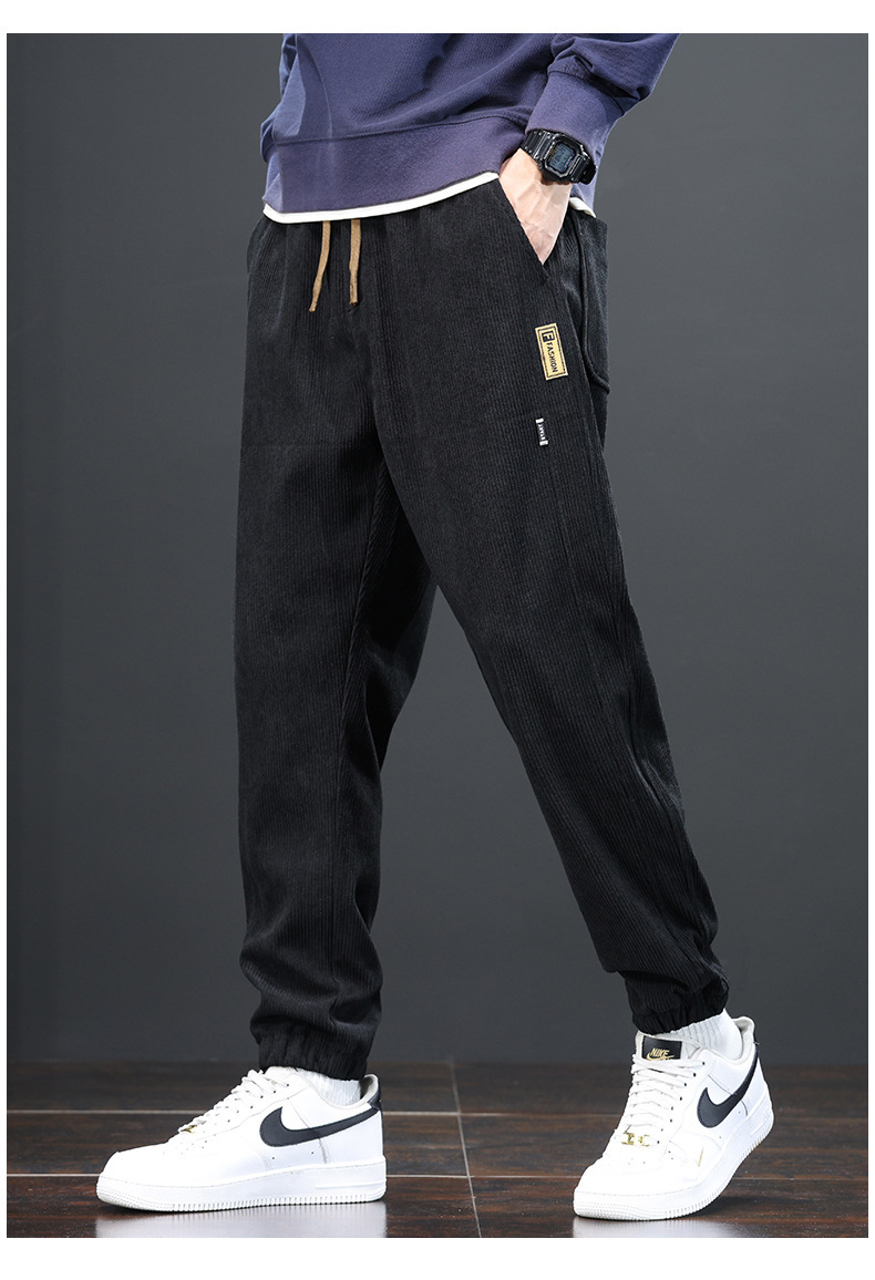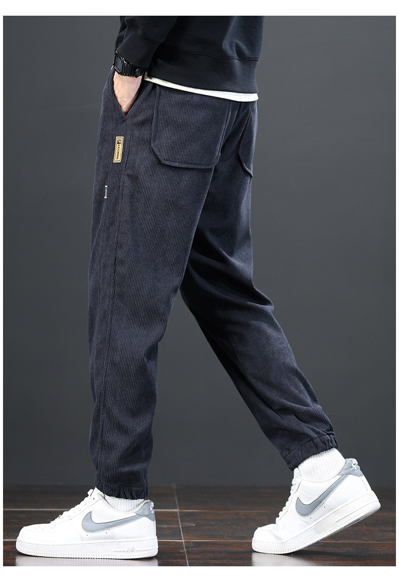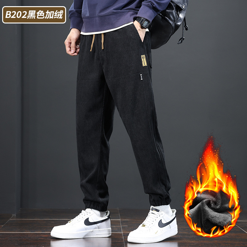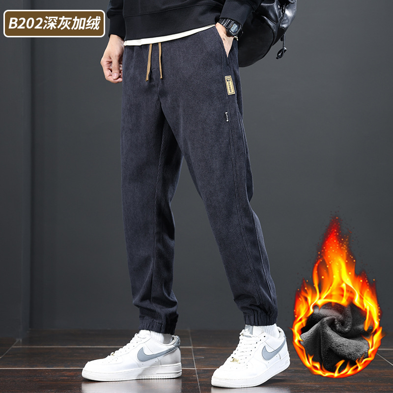 코듀로이 기모 바지 남자 가을 겨울 캐주얼 바지 남자 트렌디 루즈 바지 스포츠 스웨트 팬츠