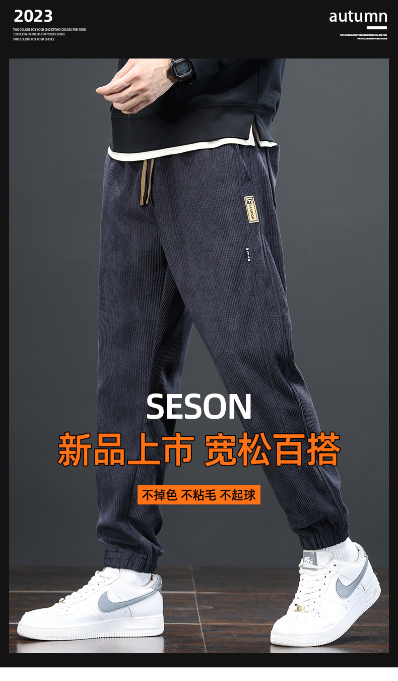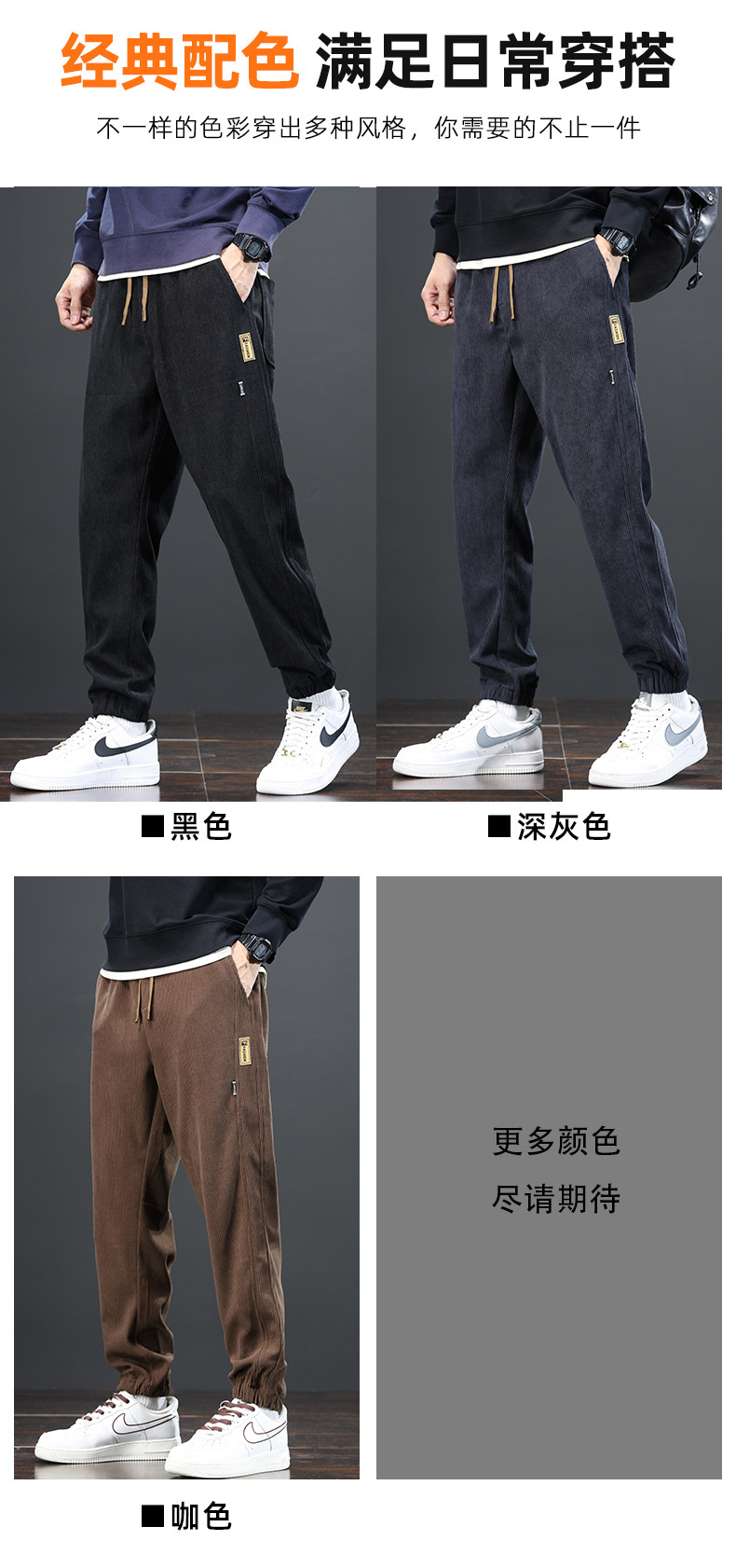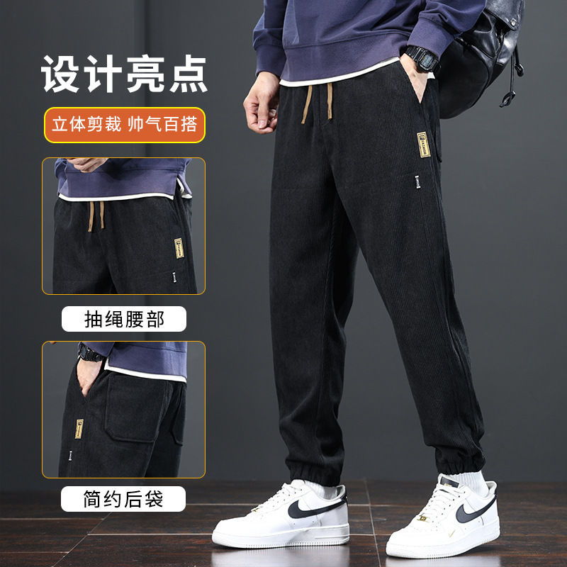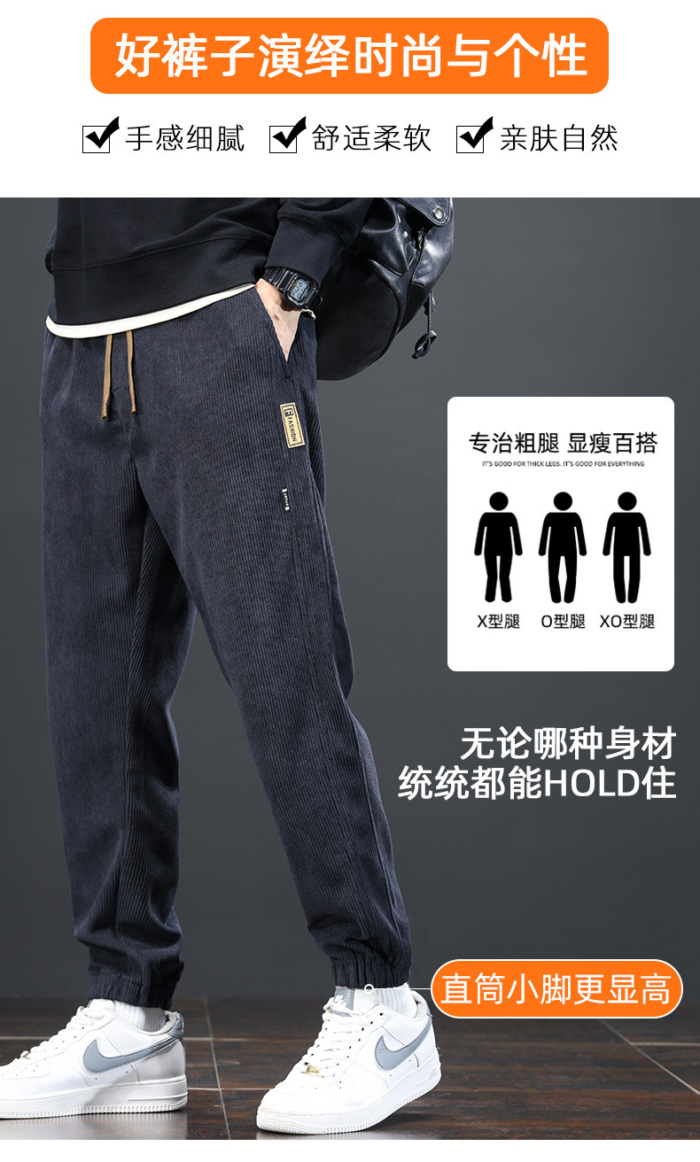 코듀로이 기모 바지 남자 가을 겨울 캐주얼 바지 남자 트렌디 루즈 바지 스포츠 스웨트 팬츠스토어 가기