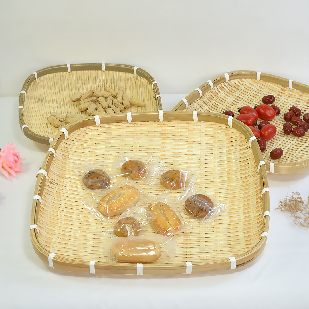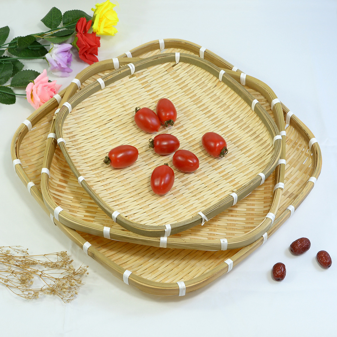 수제 대나무 짠 작은 대나무 접시 바구니 트레이 플레이트 식기 대나무 바구니 짠 대나무 바구니 제품 호텔 및 호텔 가정용스토어 가기