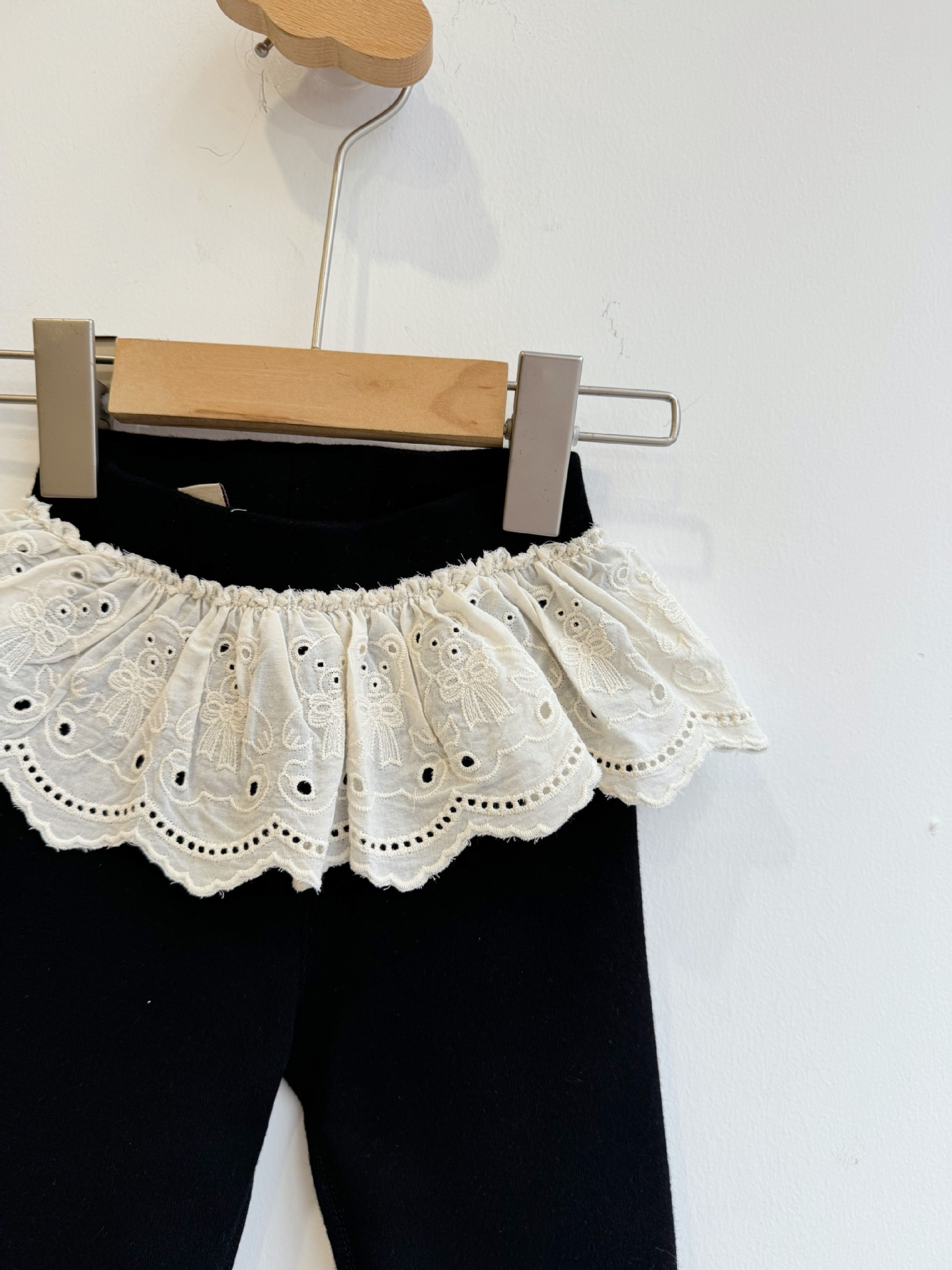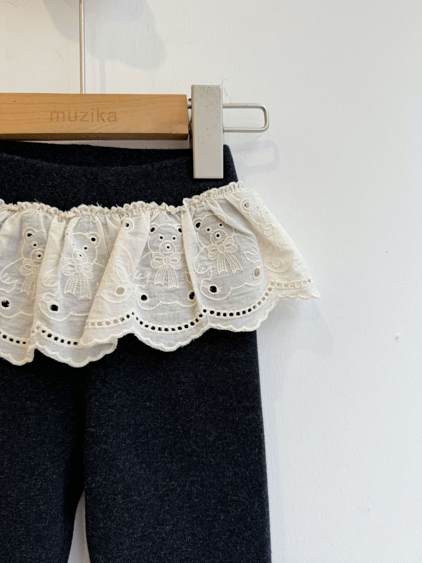 2025秋季中大女童拼接蕾丝花边牛仔裤中裤长裤设计感喇叭裤阔腿裤