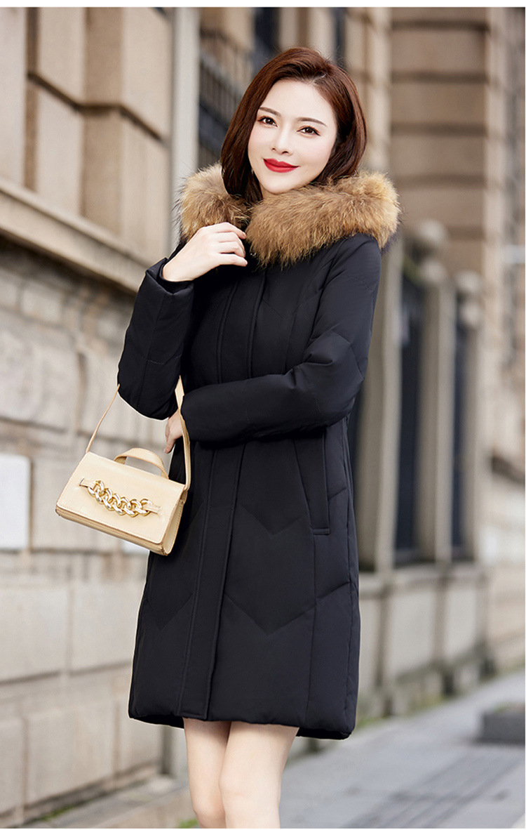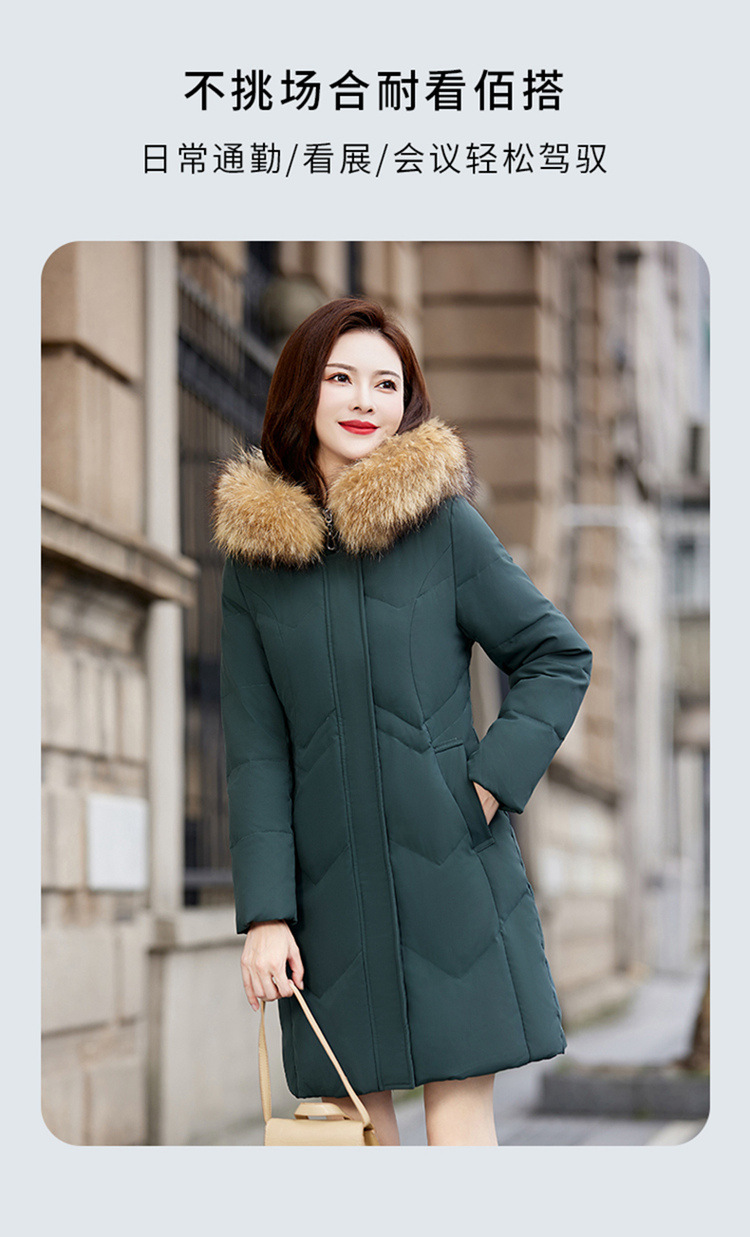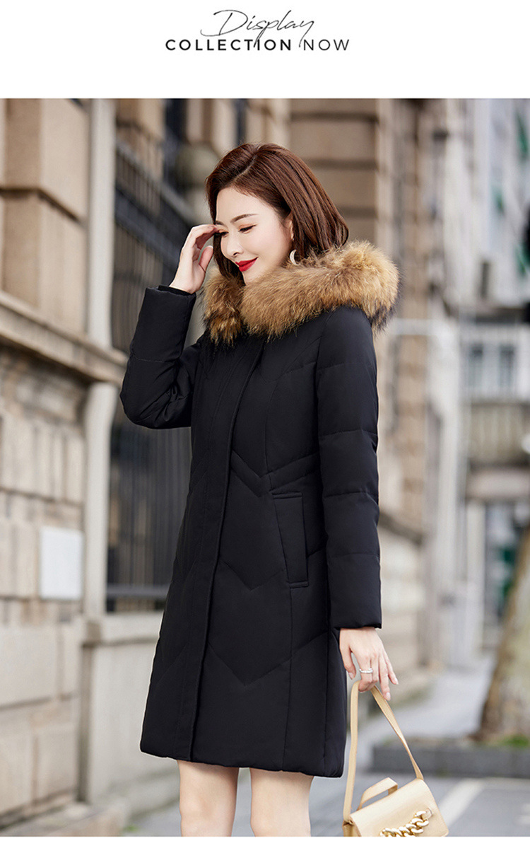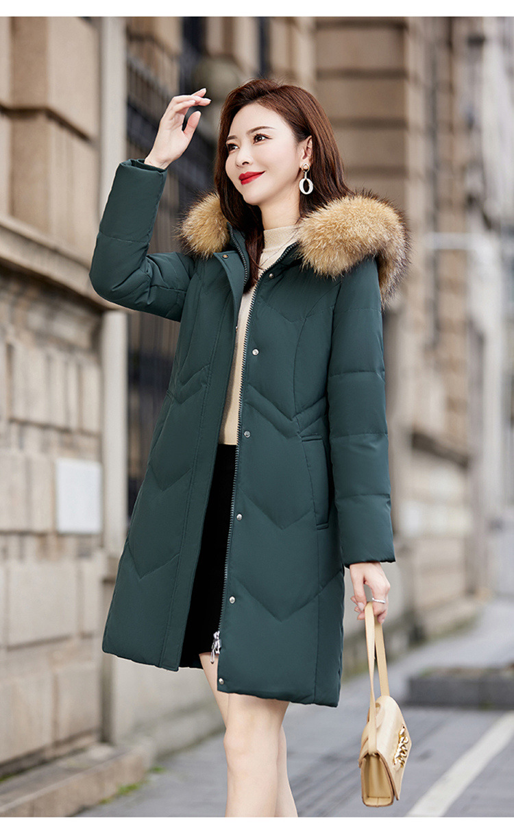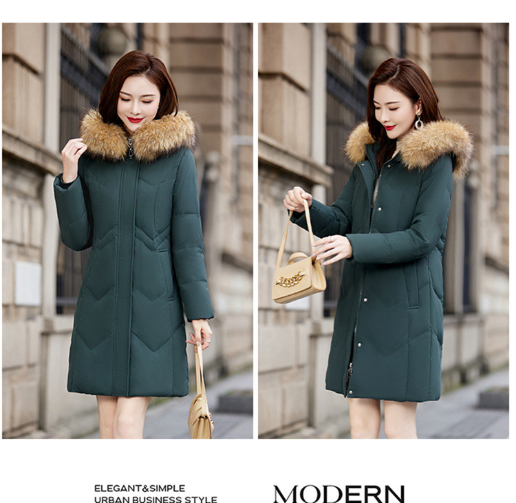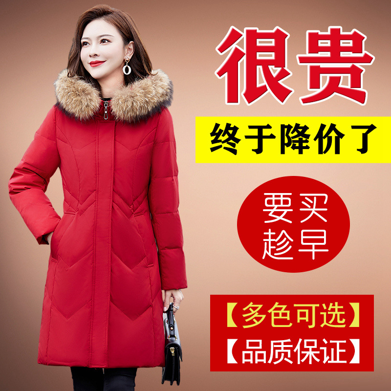 브랜드 패션 캐주얼 긴 다운 재킷 여성 2024 겨울 새로운 흰색 오리 다운 진짜 모피 칼라 느슨한 코트스토어 가기