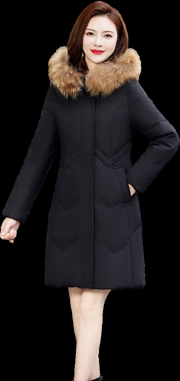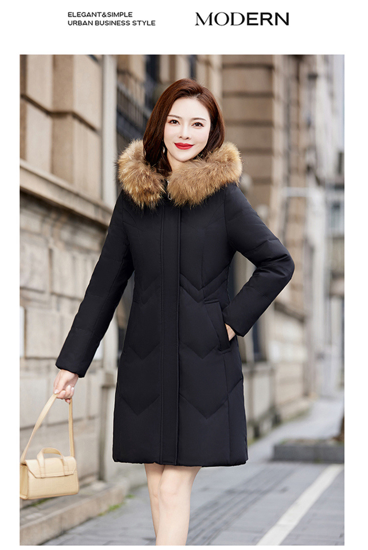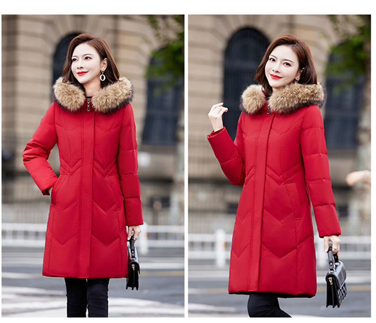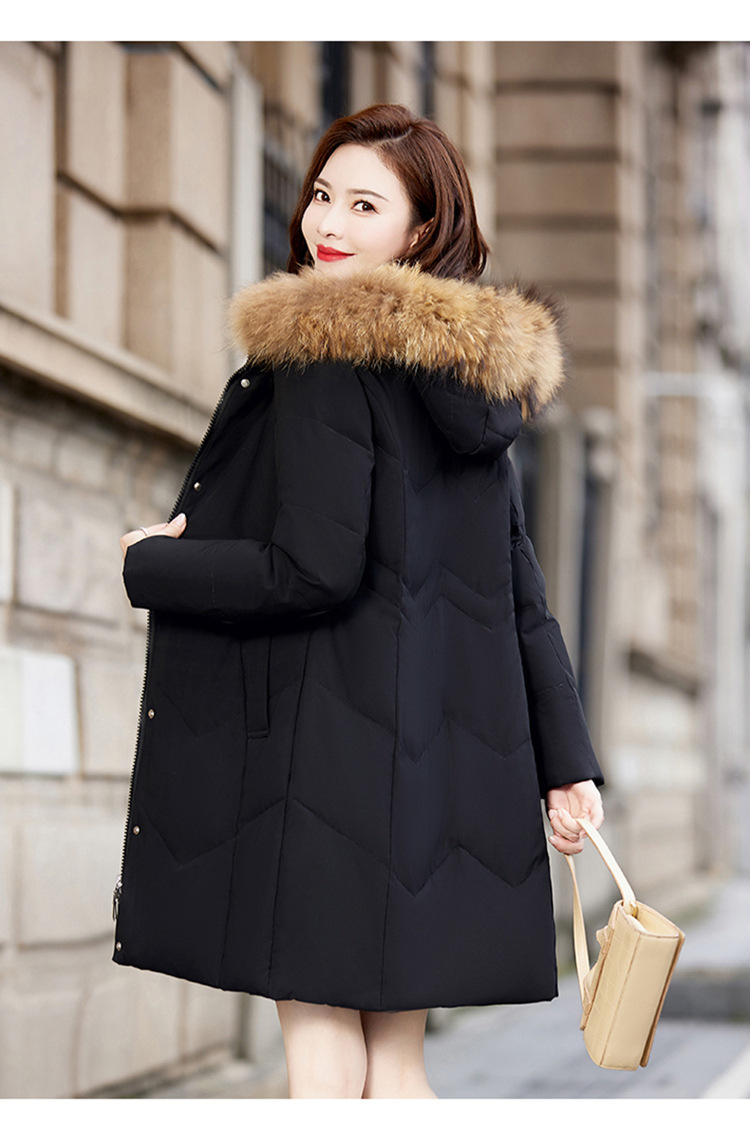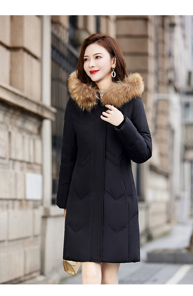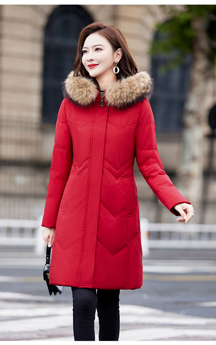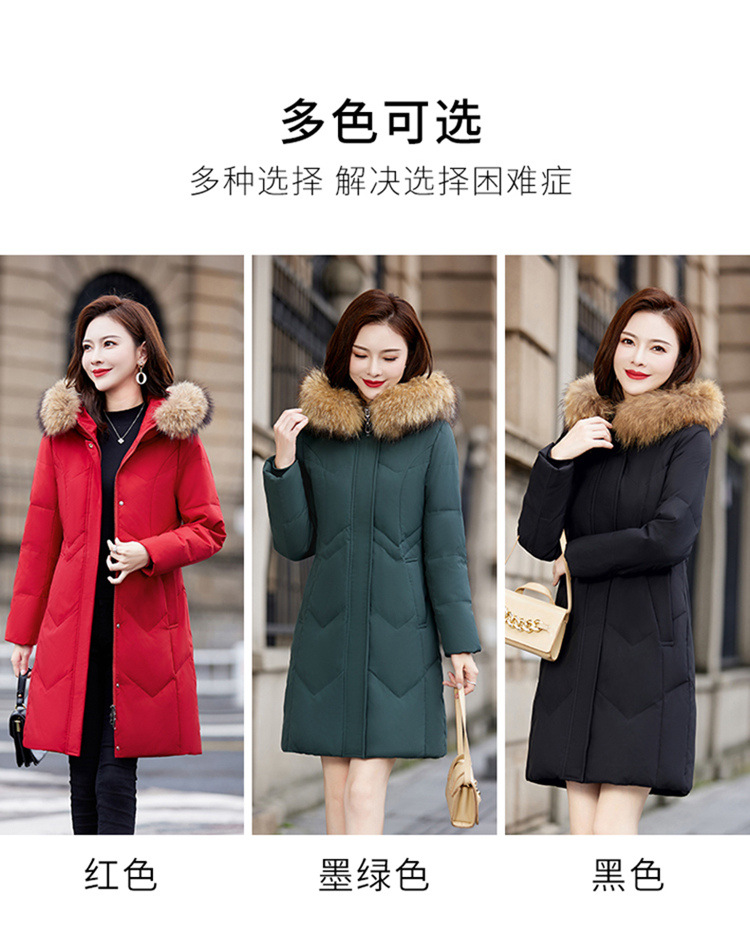 브랜드 패션 캐주얼 긴 다운 재킷 여성 2024 겨울 새로운 흰색 오리 다운 진짜 모피 칼라 느슨한 코트스토어 가기