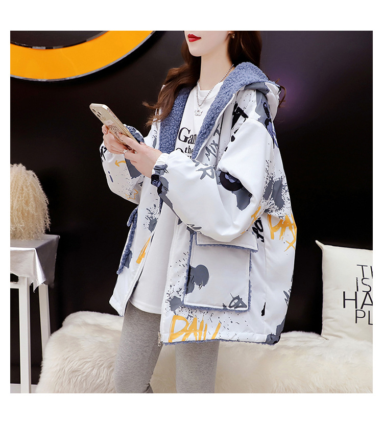 两面可穿设计感小众羊羔绒连帽卫衣女秋冬季外套加绒加厚开衫上衣