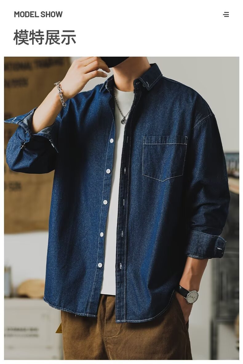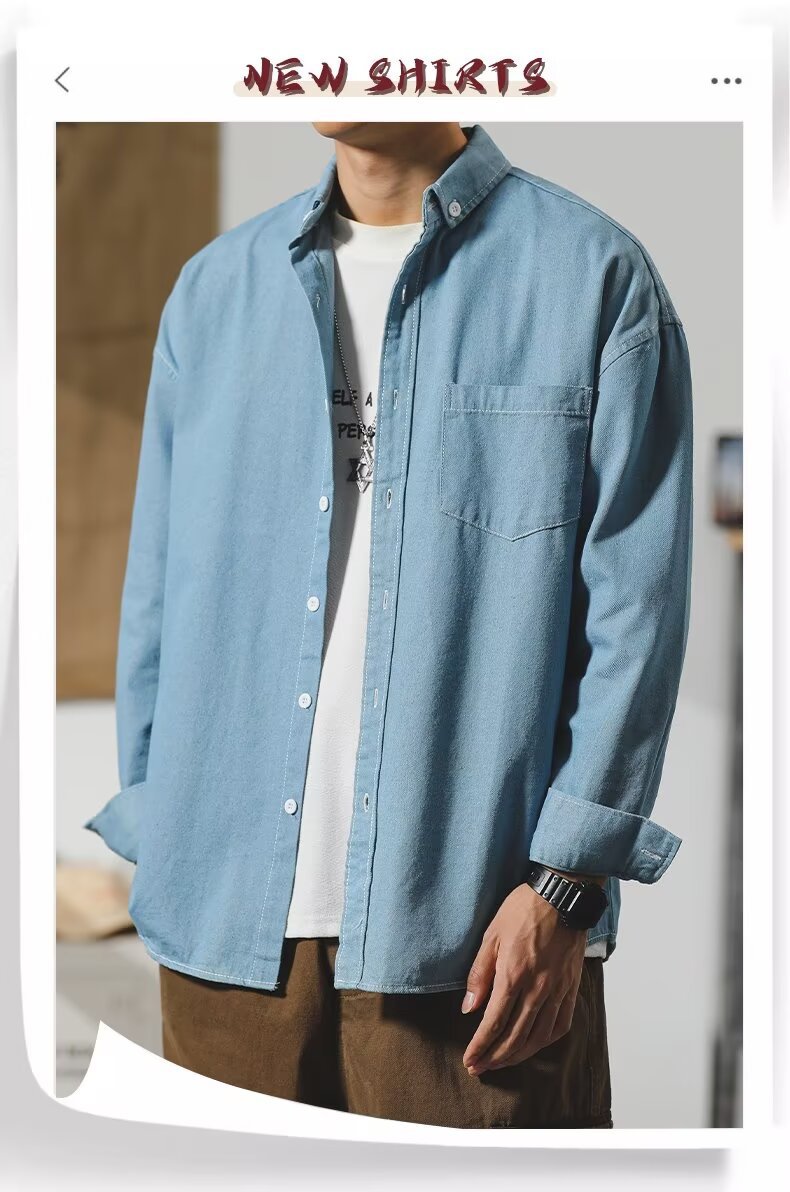 데님 셔츠 남자 유행 느슨한 핸섬 올 매치 긴팔 원피스 셔츠 홍콩 스타일 데님 코트 봄과 가을스토어 가기