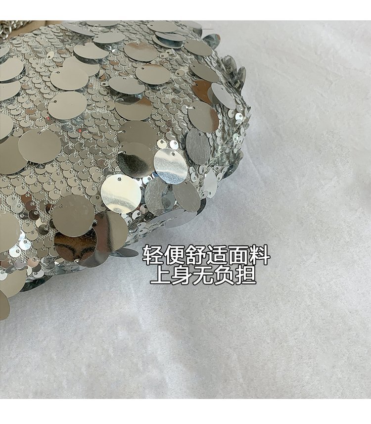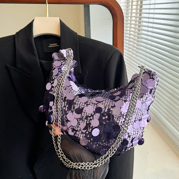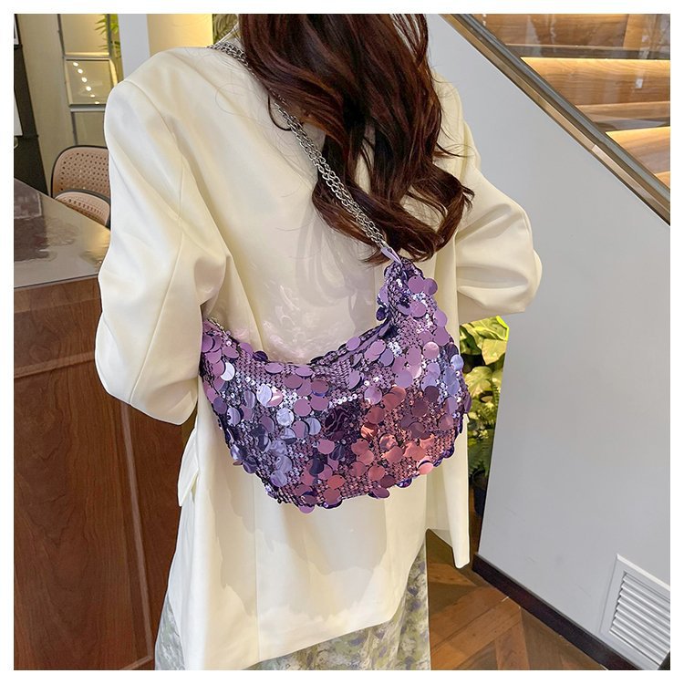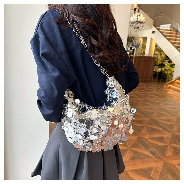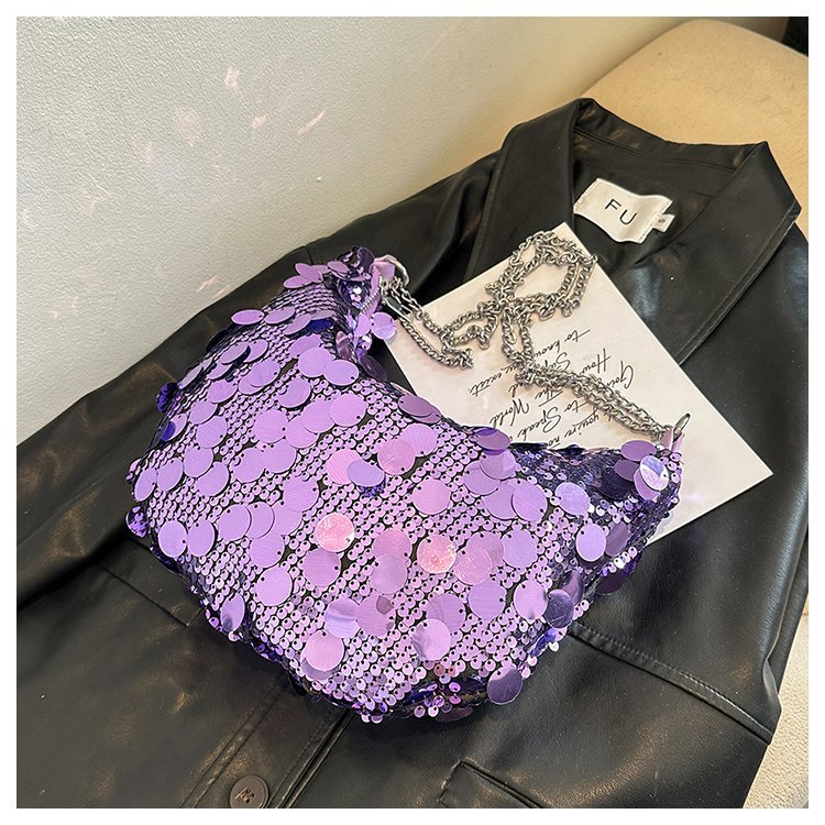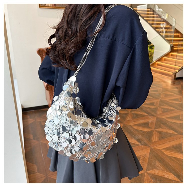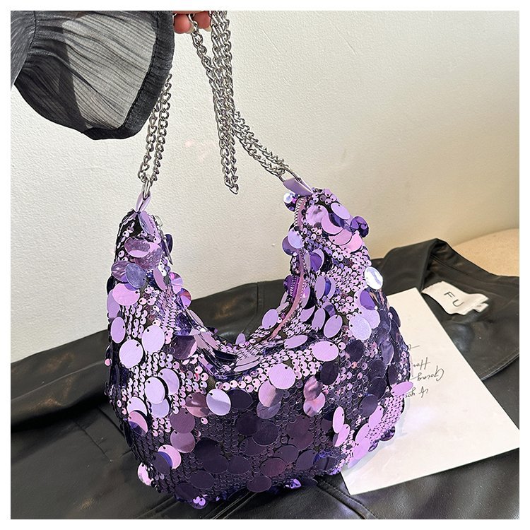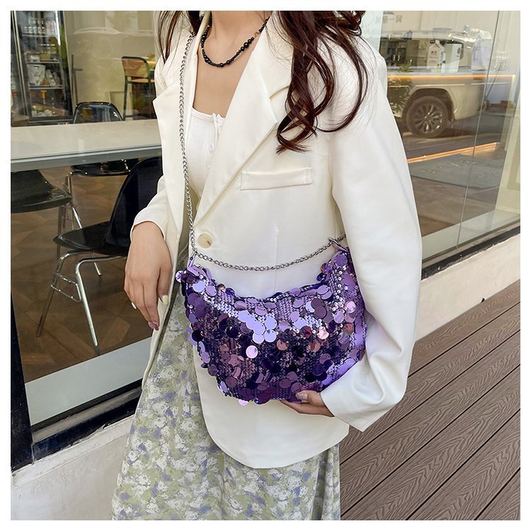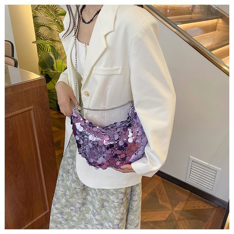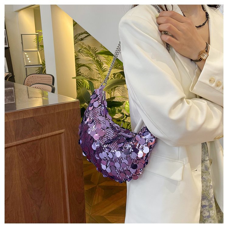 Sequin Bag 여성의 2024 봄 새로운 패션 간단한 체인 크로스 바디 백 캐주얼 크레센트 백 캐주얼 만두 백스토어 가기