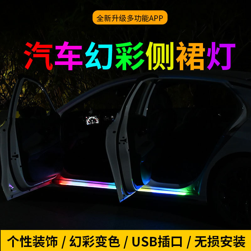 자동차 도어 사이드 라이트 페달 사이드 스커트 라이트 분위기 빛 다채로운 스트라이머 라이트 라이트 led 매직 라이트 스트립 APP 원격 제어스토어 가기