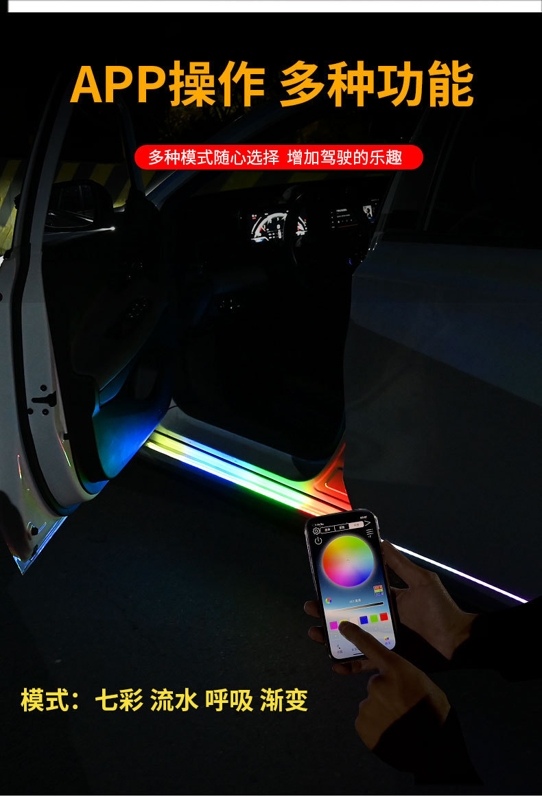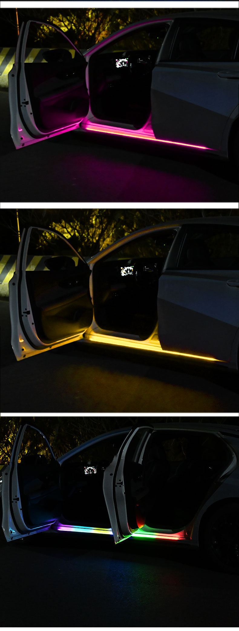 자동차 도어 사이드 라이트 페달 사이드 스커트 라이트 분위기 빛 다채로운 스트라이머 라이트 라이트 led 매직 라이트 스트립 APP 원격 제어