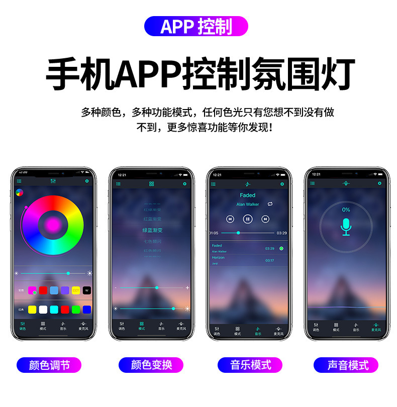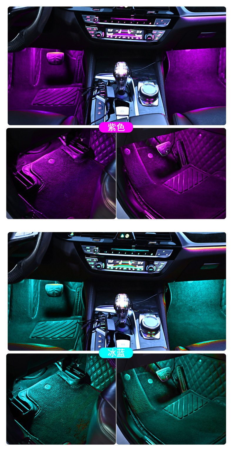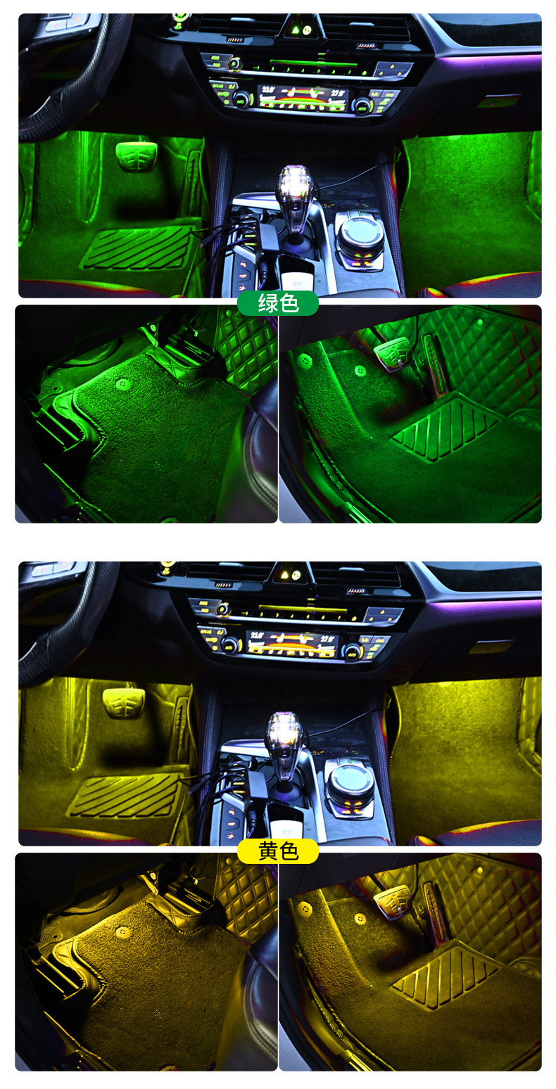 자동차 분위기 빛 배선이없는 수정 된 자동차 인테리어 장식 led 음악 리듬 음성 제어 발 바닥 자동차 깜박이는 라이트 리어