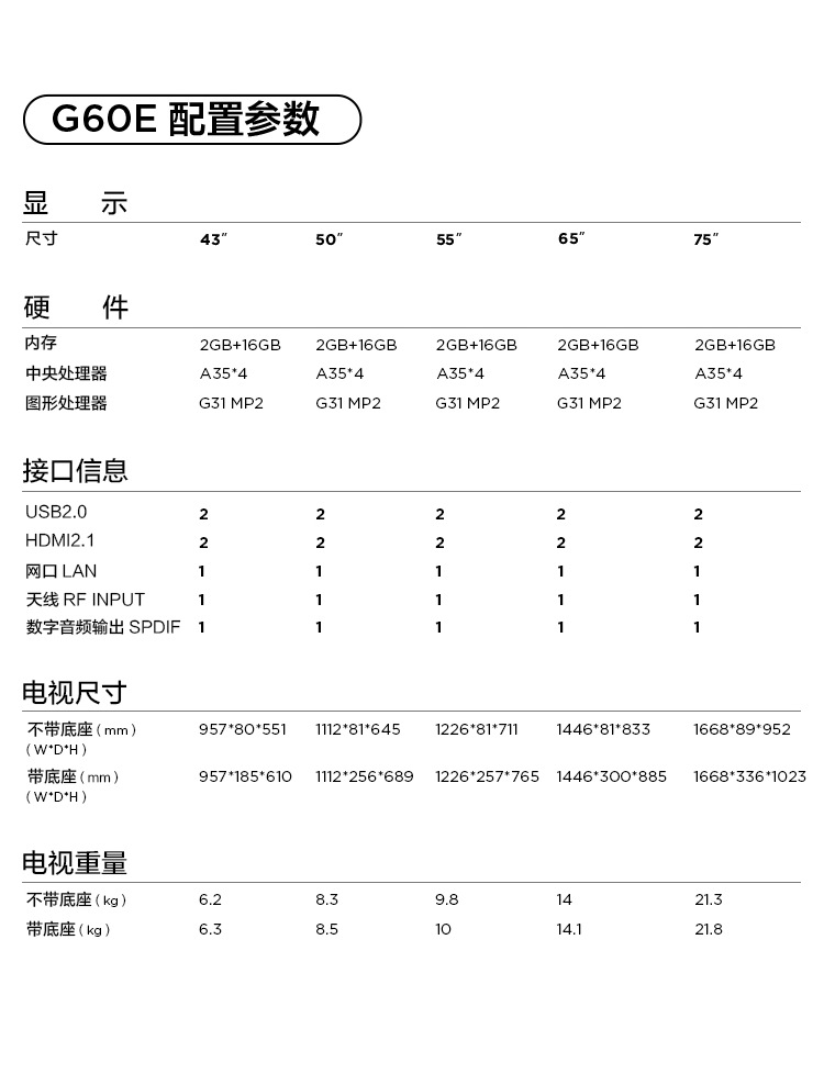 65G60E 65 "4K 울트라 HD TV 듀얼 밴드 와이파이 홈 상업용 TV