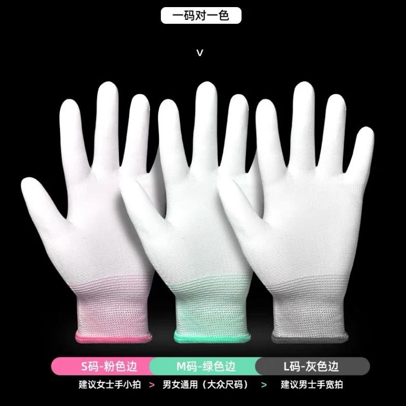 화이트 나일론 장갑 PU 핑거 코팅 두꺼운 내마모성 두부 코팅 팜 먼지가없는 작업장 미끄럼 방지 노동 보호 작업 장갑스토어 가기