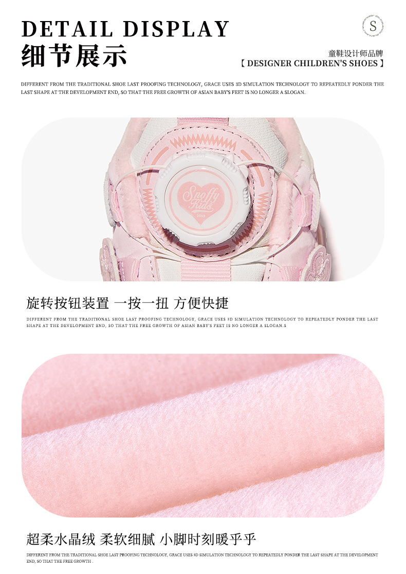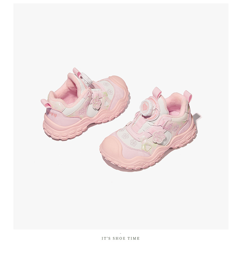 스나피 여아 운동화 2024 겨울 신상 아동 회전 버튼 신발 플러스 벨벳 보온 캐주얼 신발