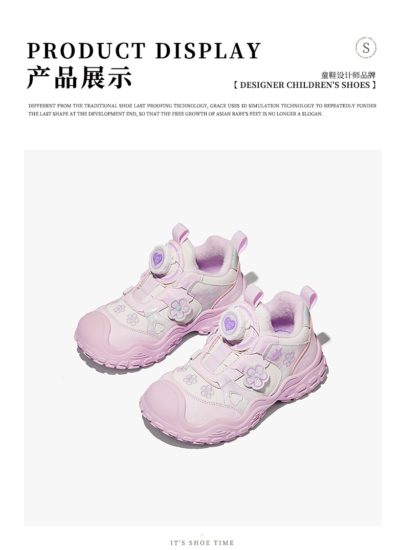 스나피 여아 운동화 2024 겨울 신상 아동 회전 버튼 신발 플러스 벨벳 보온 캐주얼 신발스토어 가기