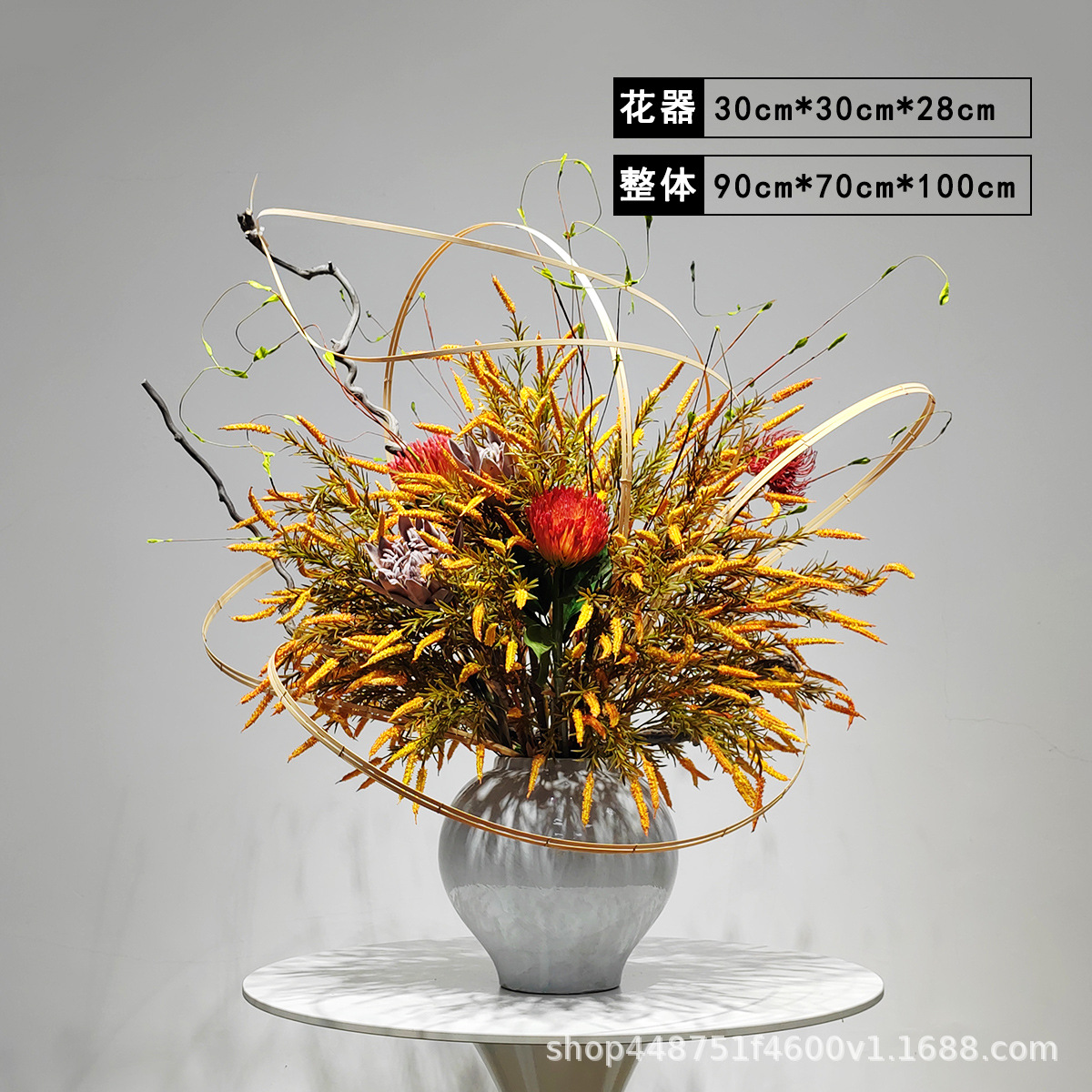 새로운 중국식 인공 꽃 장식 꽃꽂이 호텔 가짜 꽃 황금 고급 꽃 분재 전체 거실 부드러운 장식스토어 가기