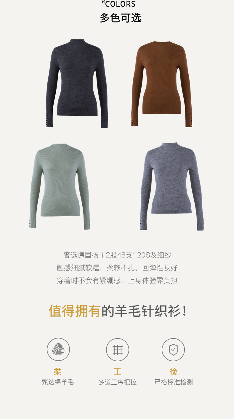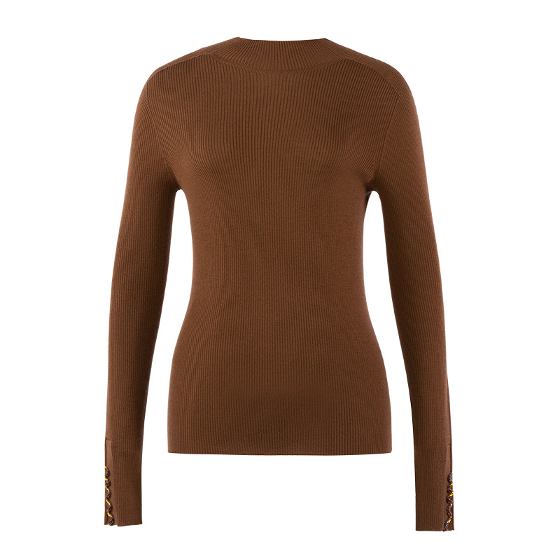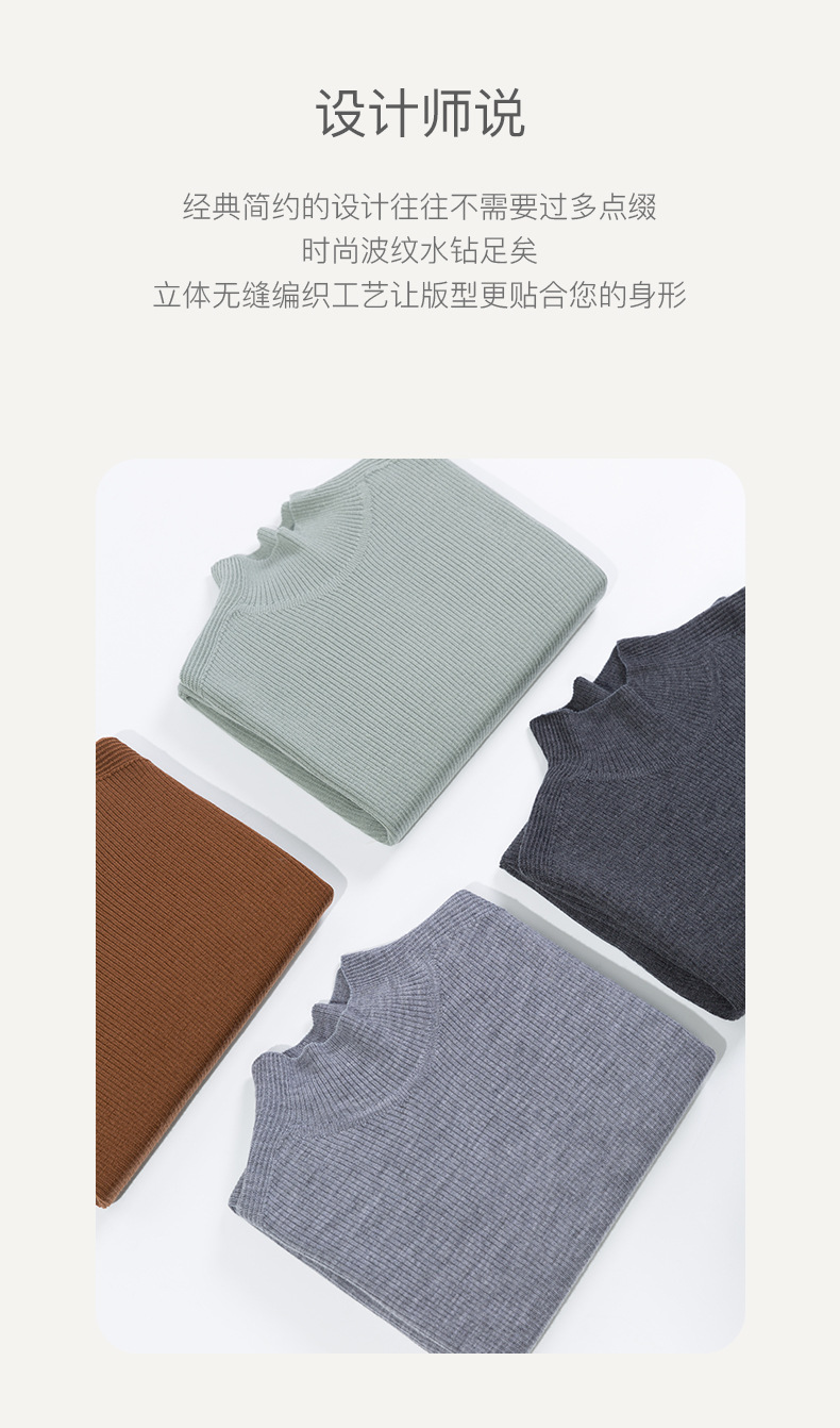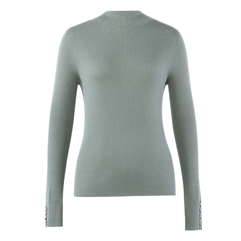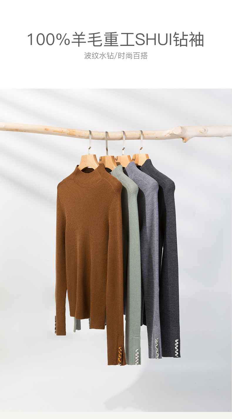 이른 가을 새로운 원활한 18 핀 손톱 라인스톤 모의 높은 목 긴 소매 100% 양모 니트베이스 셔츠 여성 슬림 핏 탑스토어 가기