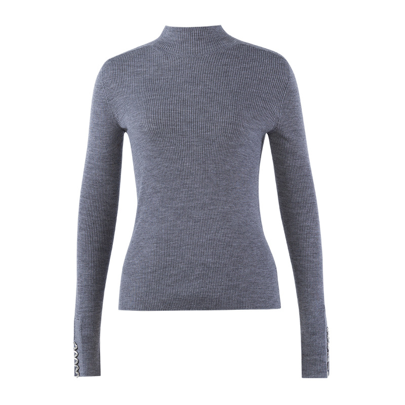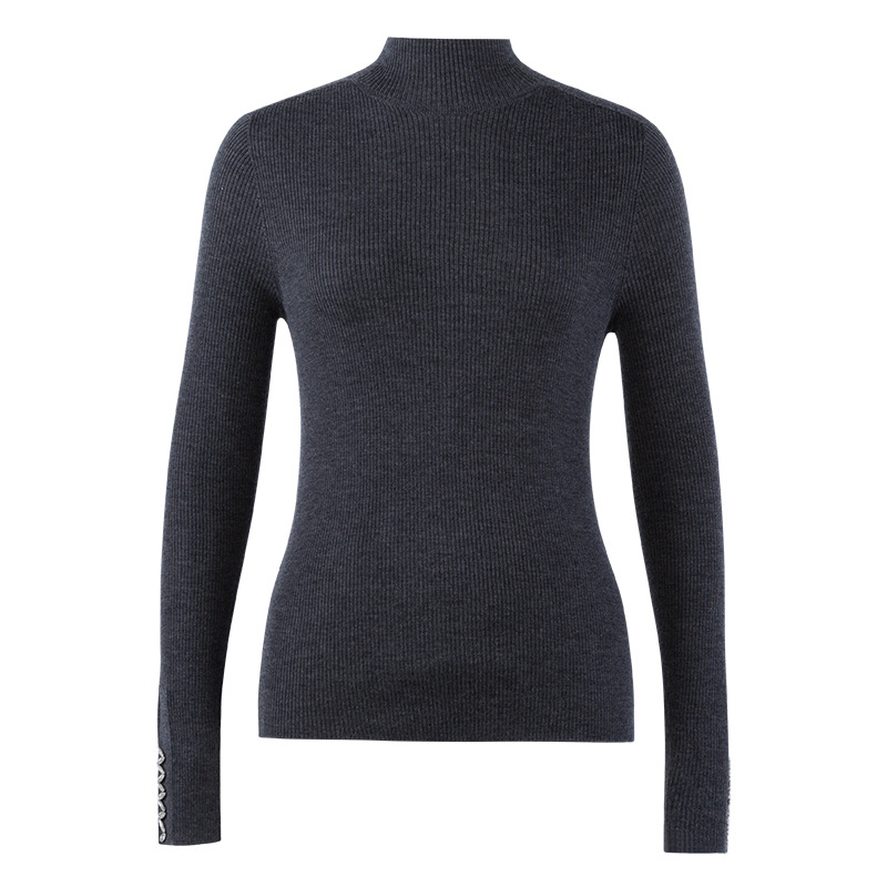 이른 가을 새로운 원활한 18 핀 손톱 라인스톤 모의 높은 목 긴 소매 100% 양모 니트베이스 셔츠 여성 슬림 핏 탑