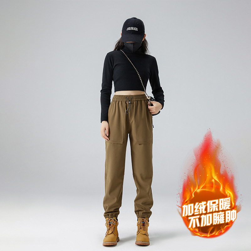 봄과 가을 플러스 사이즈 남성과 여성을위한 두꺼운 바지 기모 방풍 방수 캐주얼 바지 소프트 쉘 야외 등산 바지스토어 가기