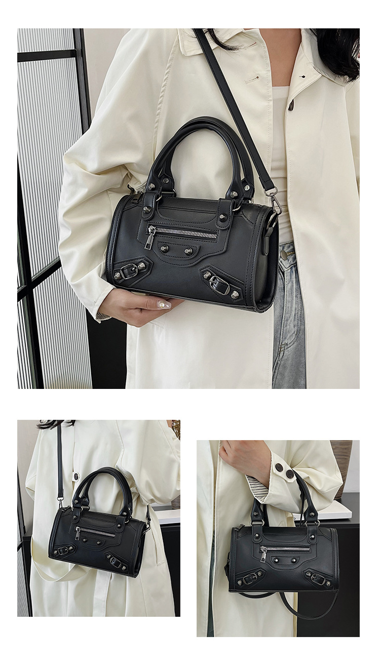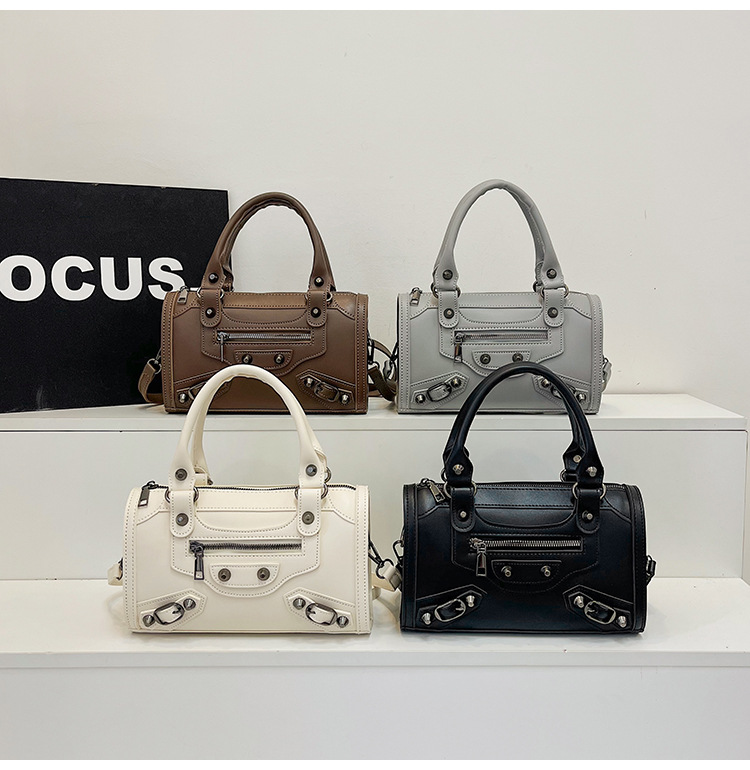 국경 간 가방 여성의 2024 새로운 오토바이 가방 빈티지 리벳 베개 가방 트렌드 휴대용 질감 어깨 메신저 가방스토어 가기