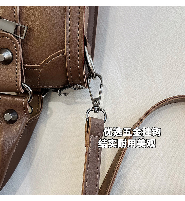 국경 간 가방 여성의 2024 새로운 오토바이 가방 빈티지 리벳 베개 가방 트렌드 휴대용 질감 어깨 메신저 가방