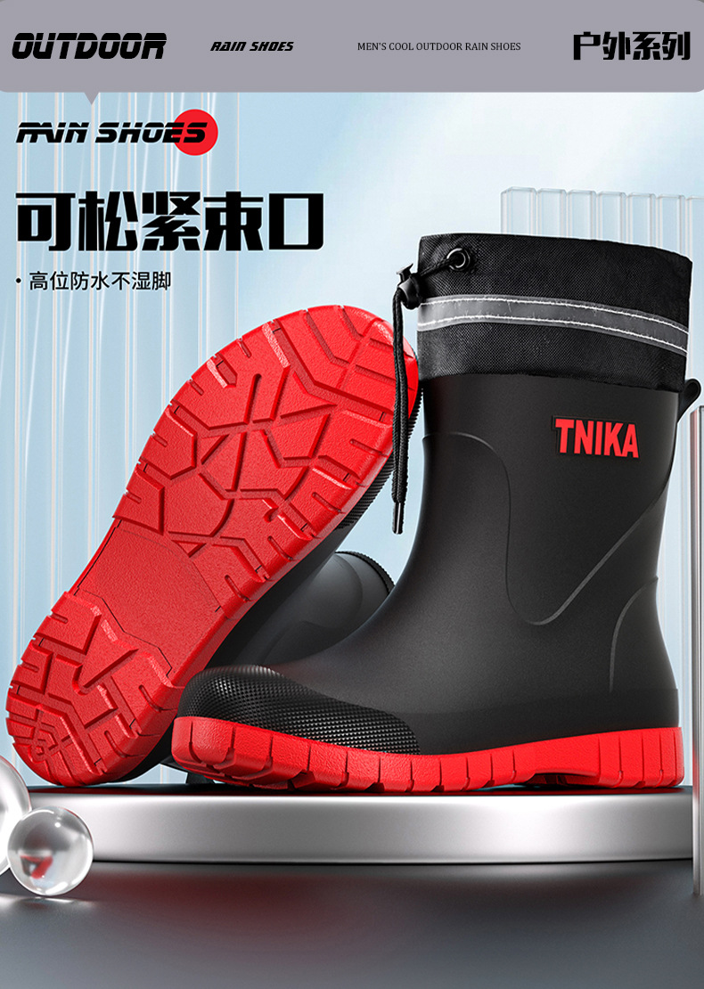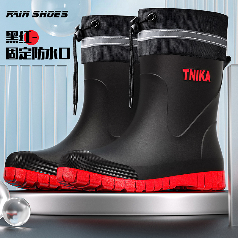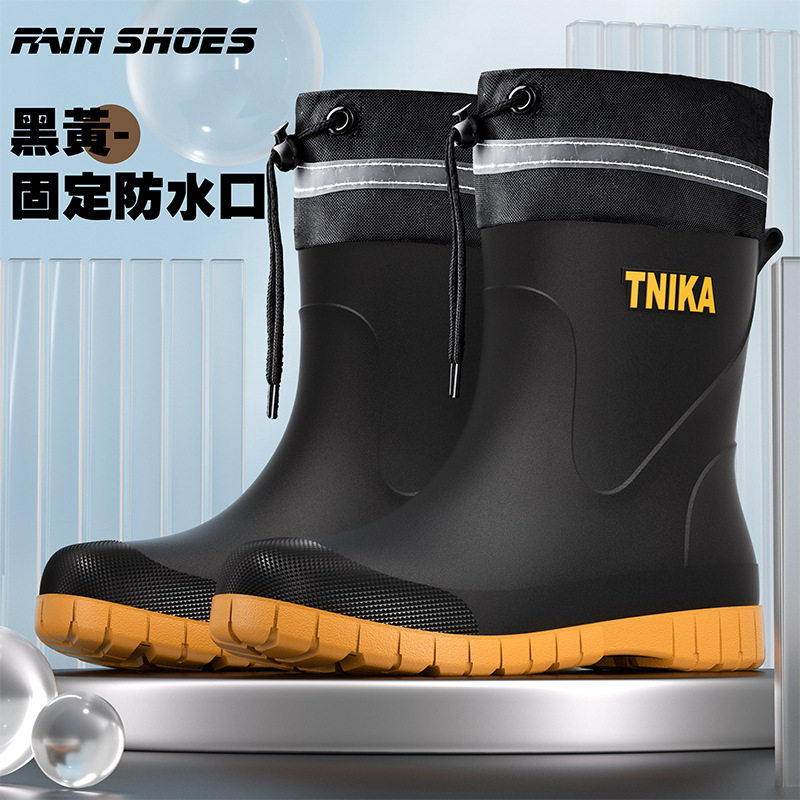 남성 비 부츠 중간 튜브 물 신발 방수 내마모성 고무 신발 커버 신발 장화 비 슬립 짧은 튜브 유행 간단한스토어 가기