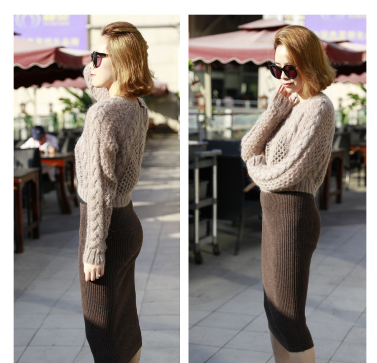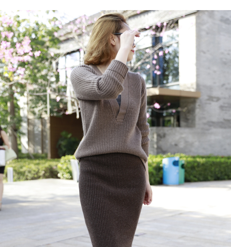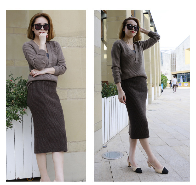 100 순수 양모 니트 스커트 여성 가을 및 겨울 중간 길이의 높은 허리 슬리밍 캐시미어 스커트 두꺼운 힙베이스 스커트스토어 가기