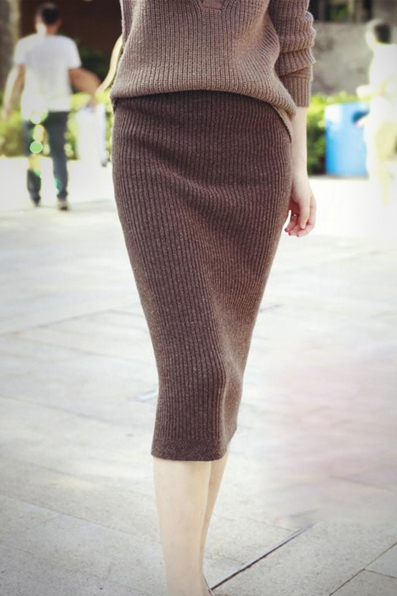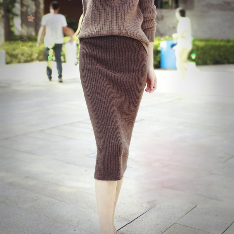 100 순수 양모 니트 스커트 여성 가을 및 겨울 중간 길이의 높은 허리 슬리밍 캐시미어 스커트 두꺼운 힙베이스 스커트