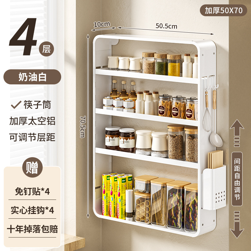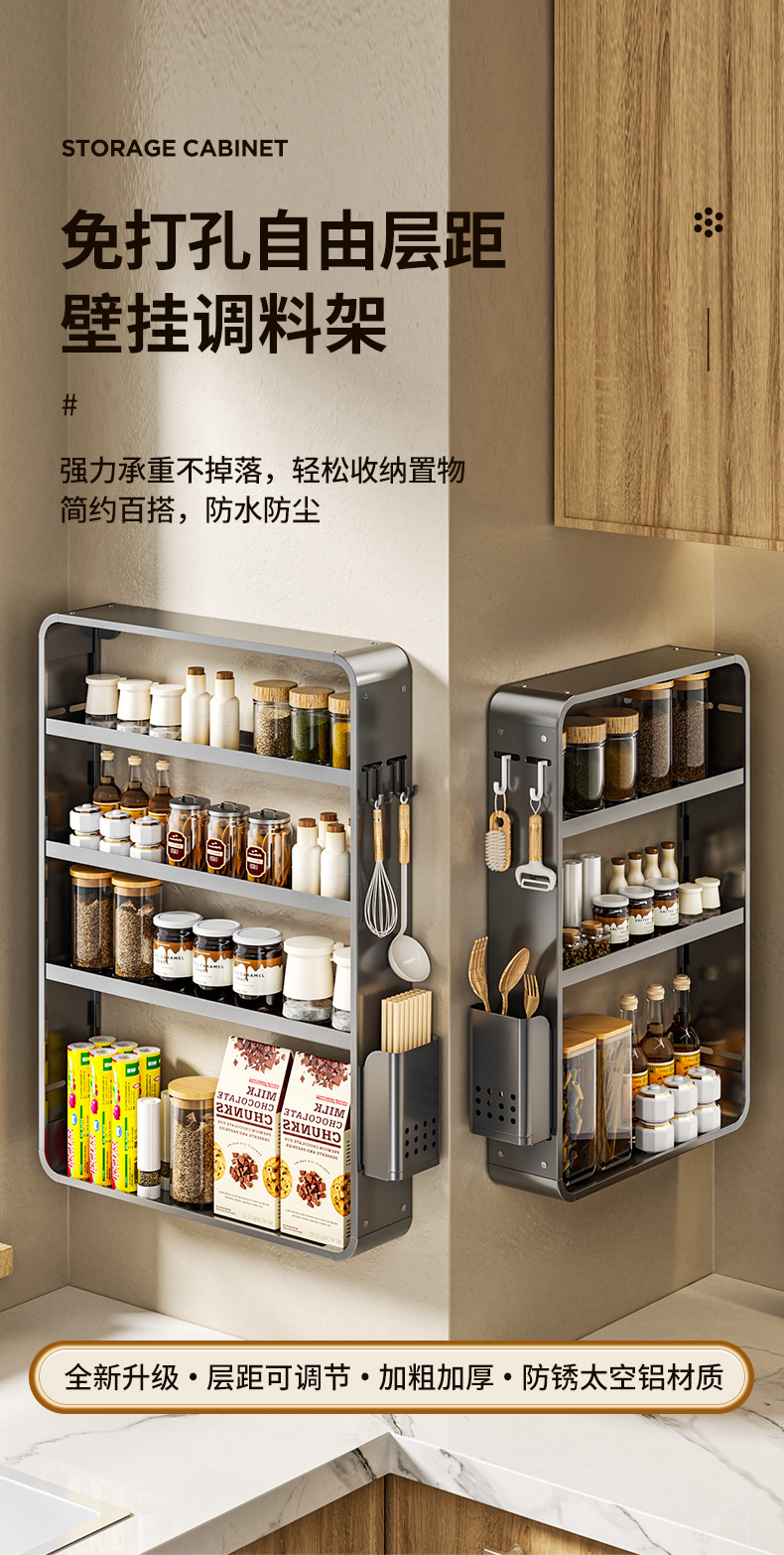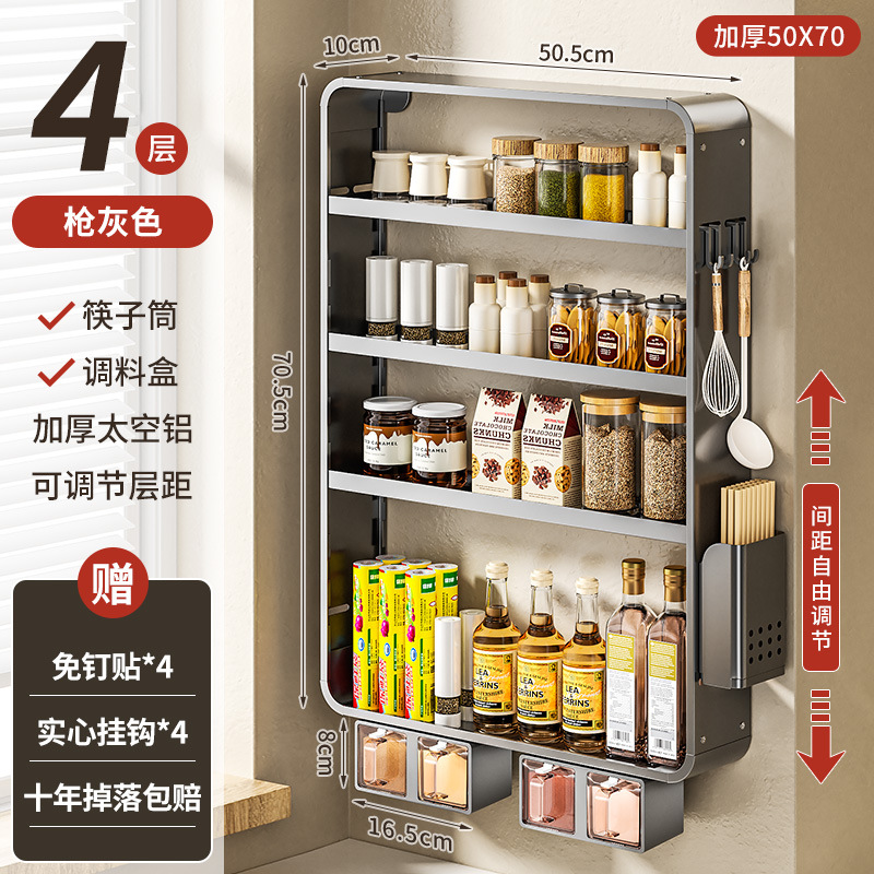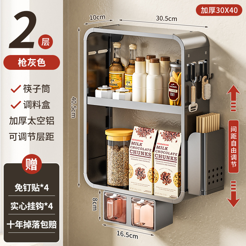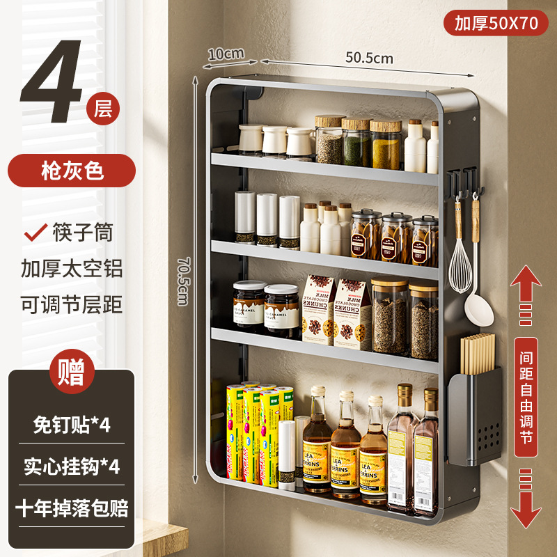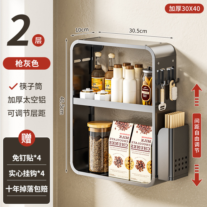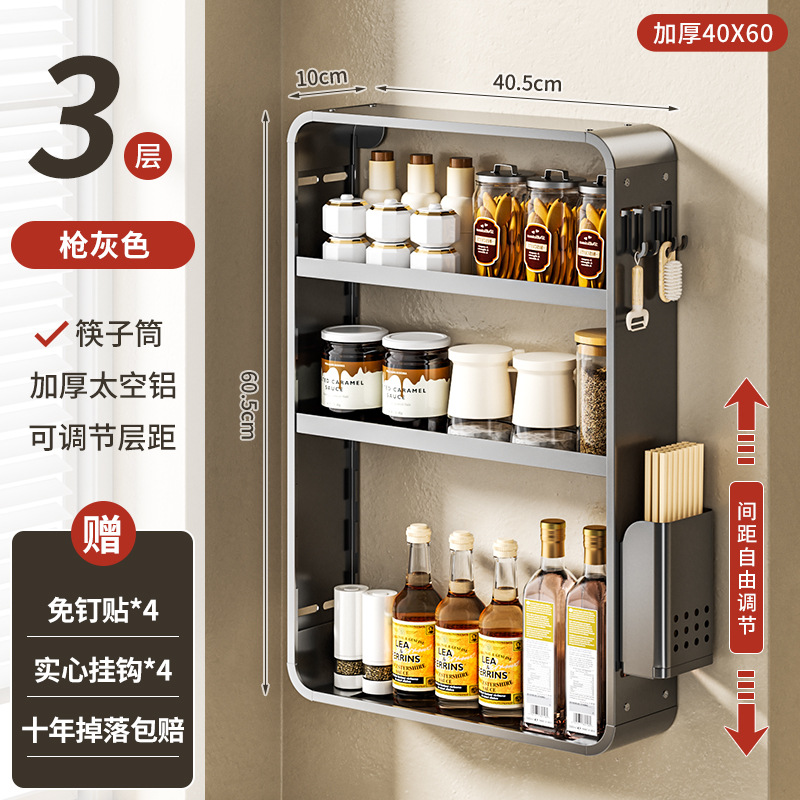 주방 수납 선반, 무타공, 다기능 벽걸이형, 양념통, 젓가락, 간장병, 용품 수납 공간, 알루미늄