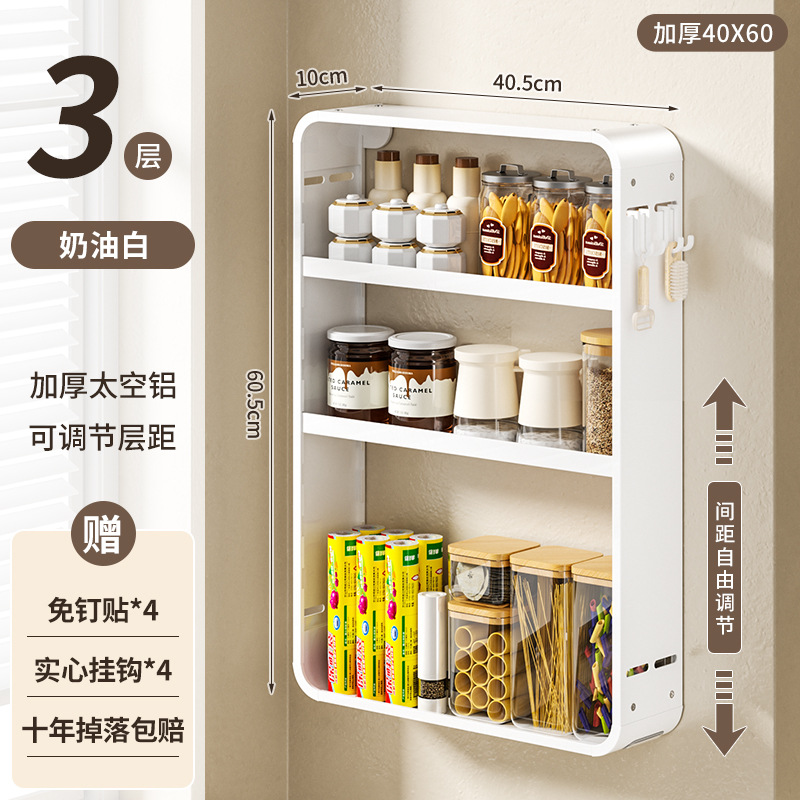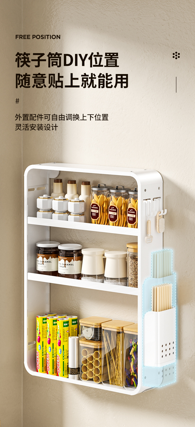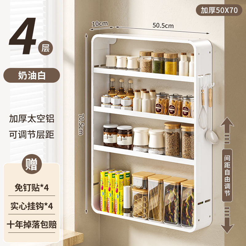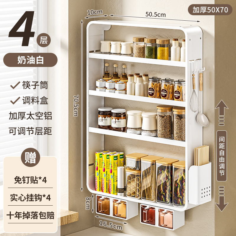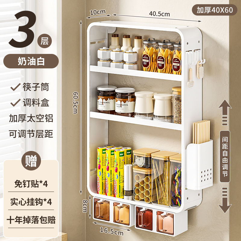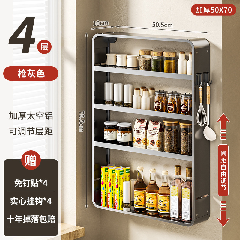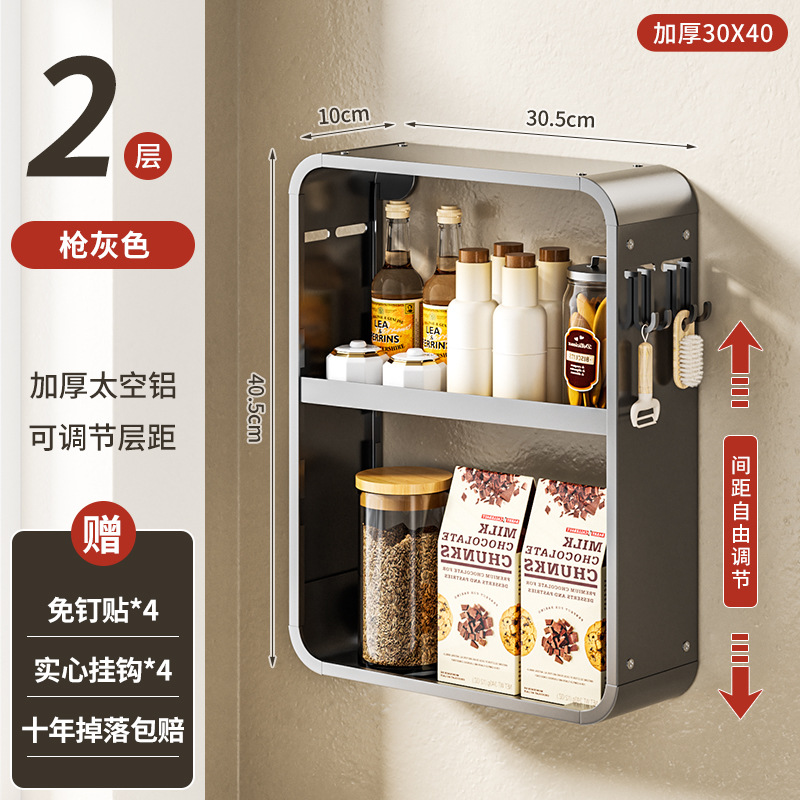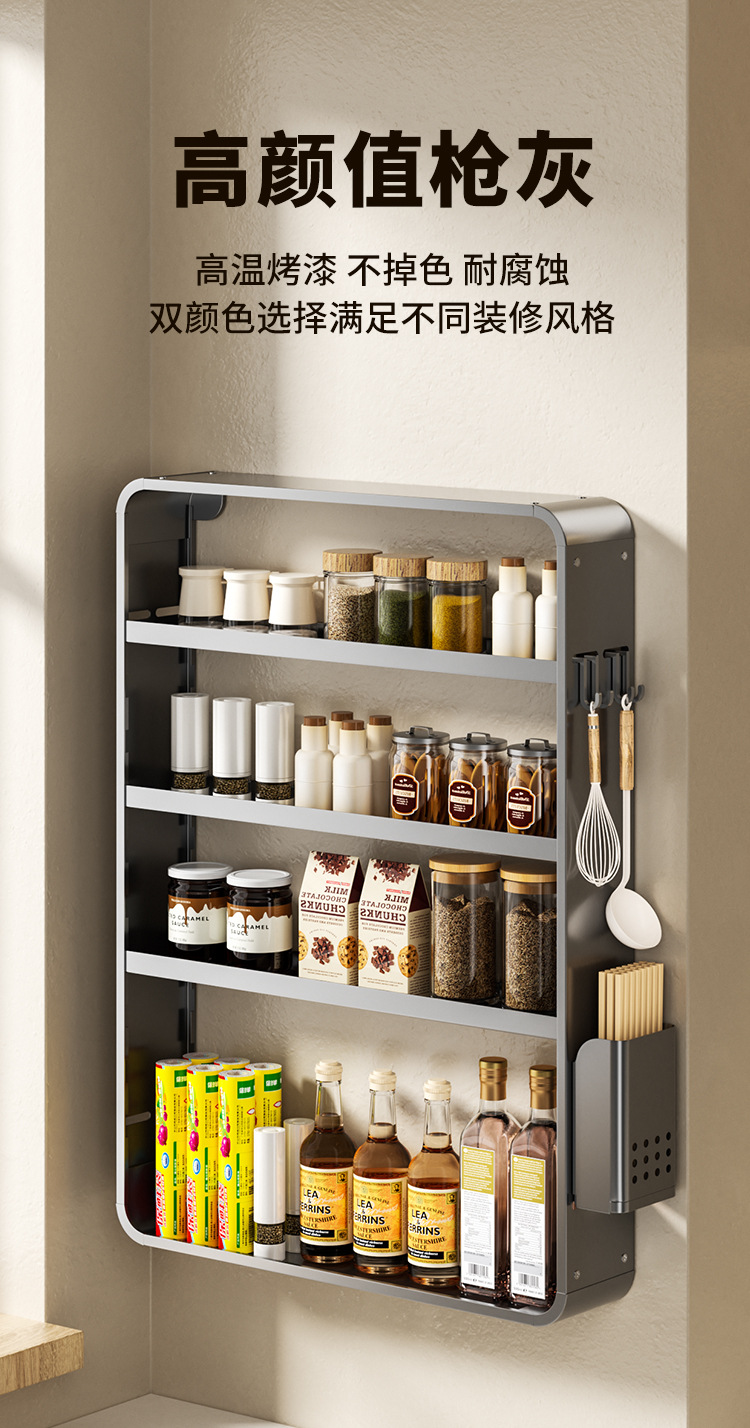 주방 수납 선반, 무타공, 다기능 벽걸이형, 양념통, 젓가락, 간장병, 용품 수납 공간, 알루미늄