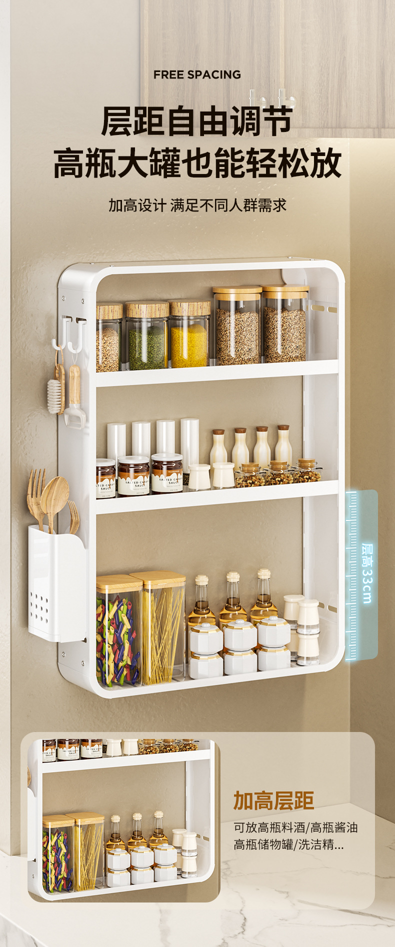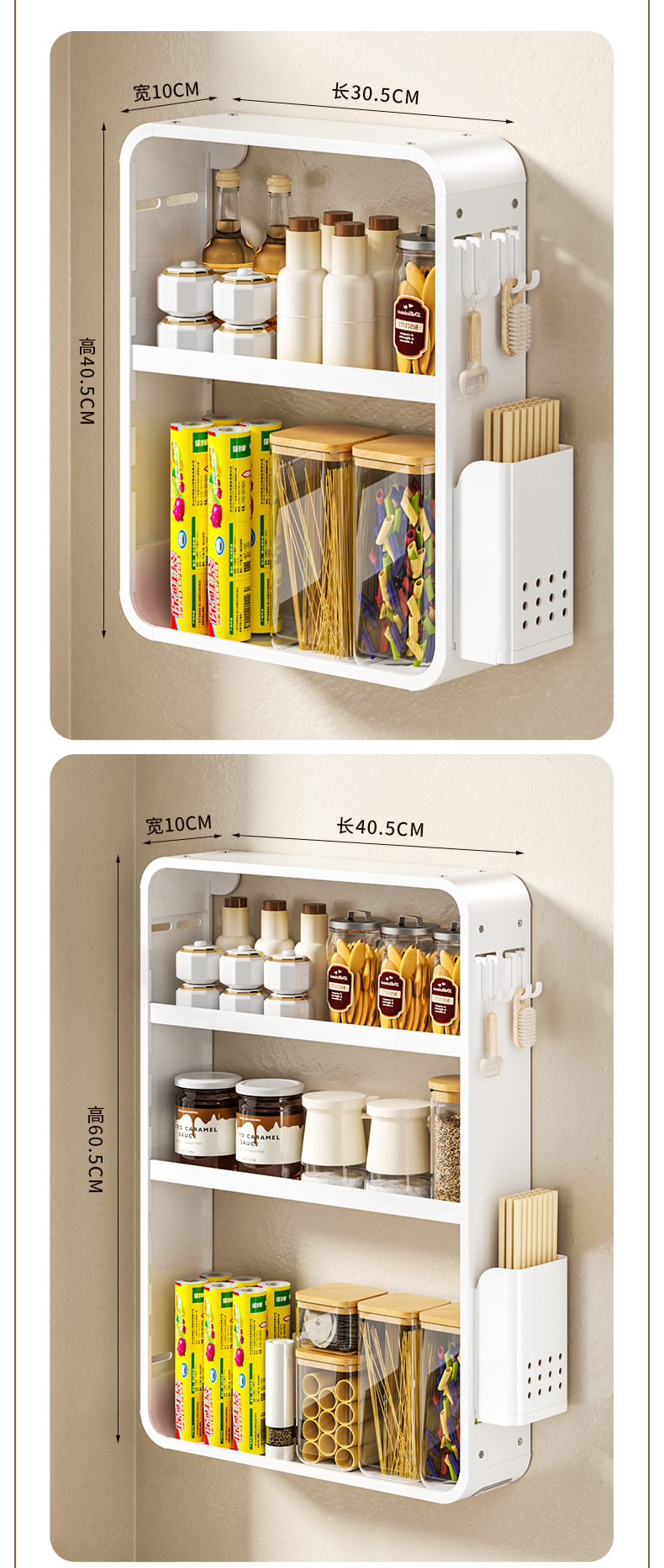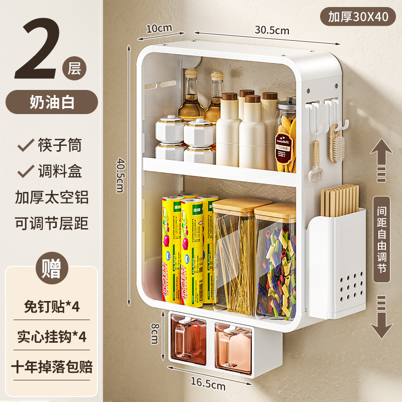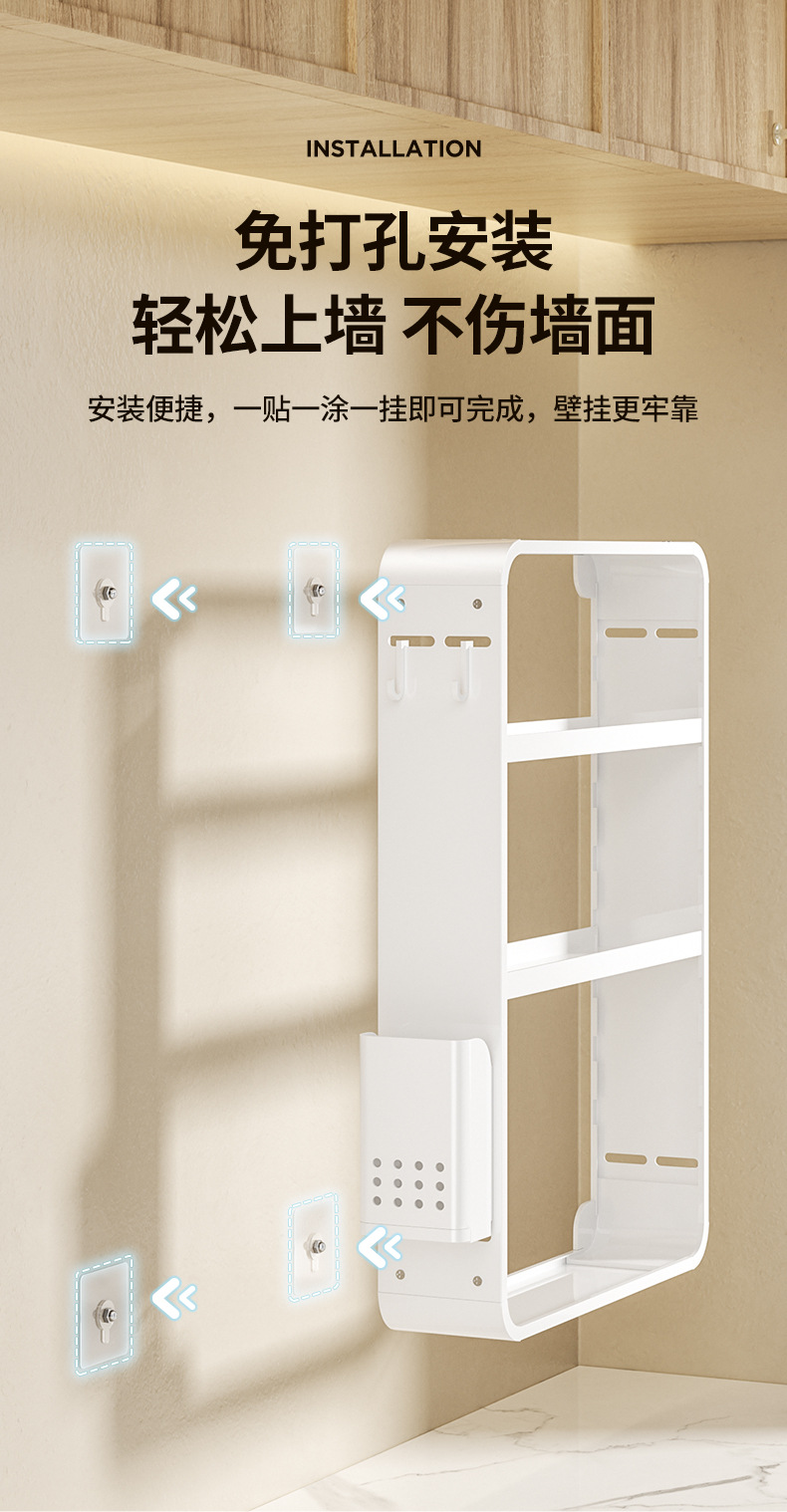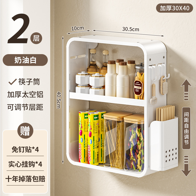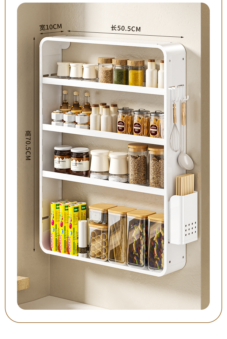 주방 수납 선반, 무타공, 다기능 벽걸이형, 양념통, 젓가락, 간장병, 용품 수납 공간, 알루미늄
