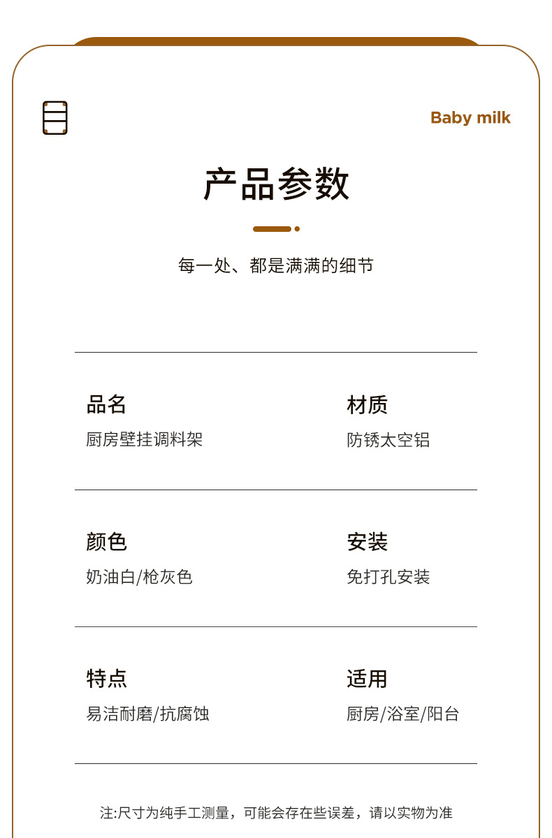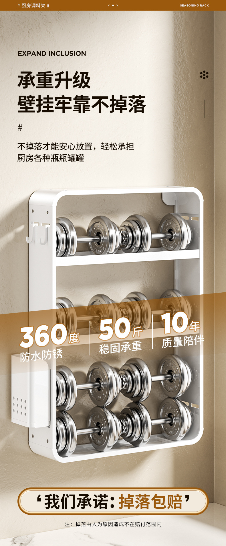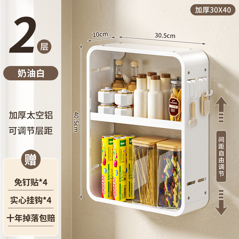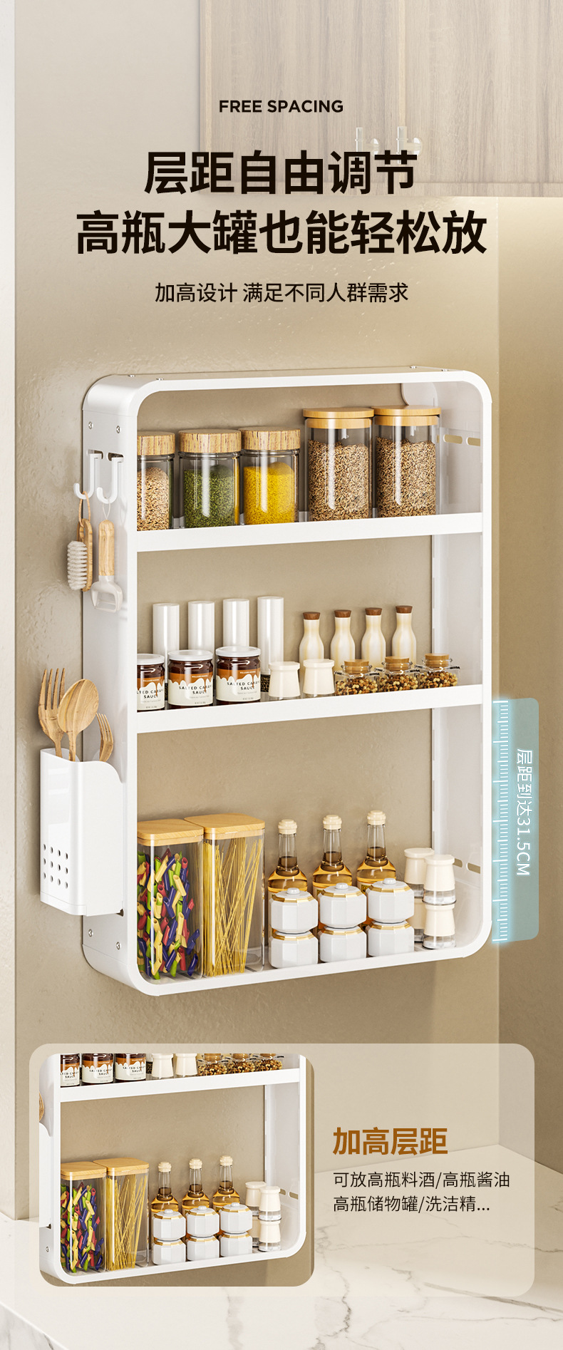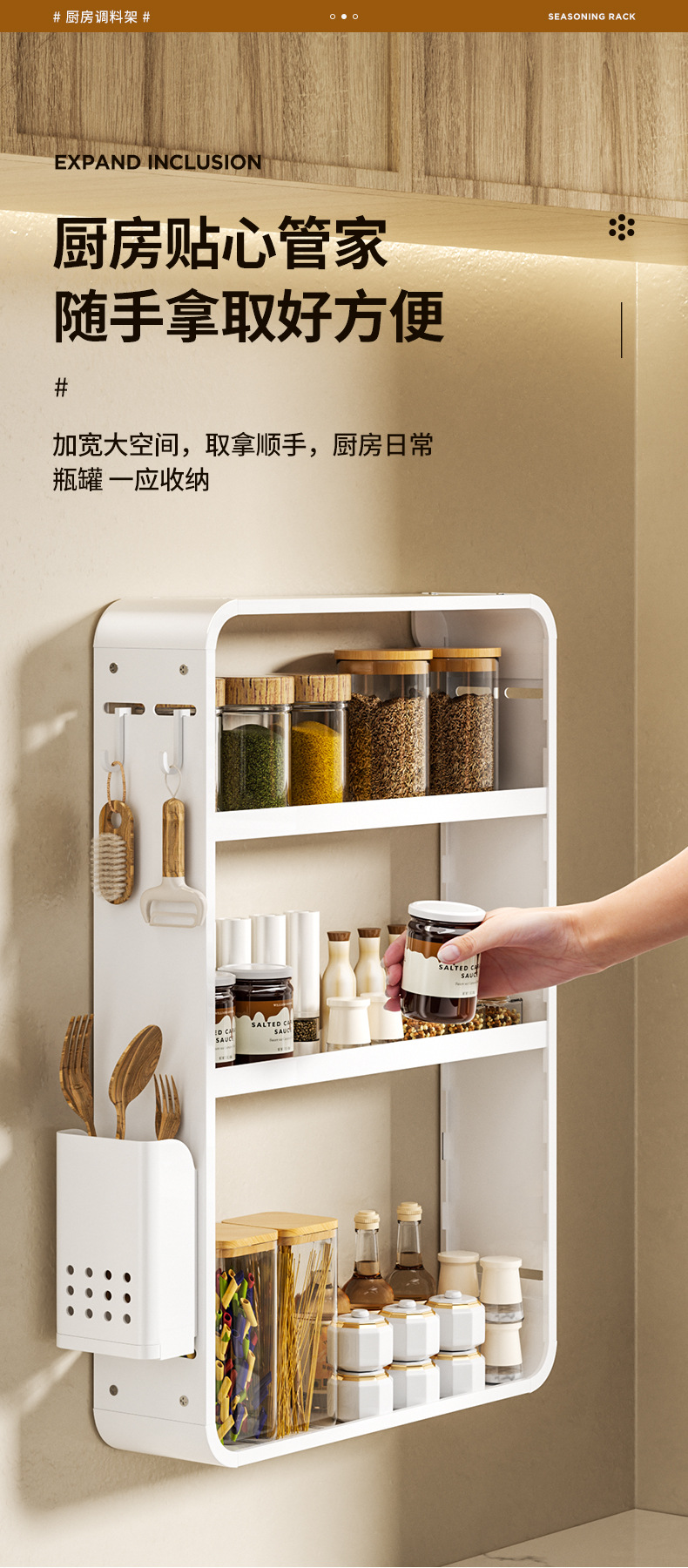 주방 수납 선반, 무타공, 다기능 벽걸이형, 양념통, 젓가락, 간장병, 용품 수납 공간, 알루미늄