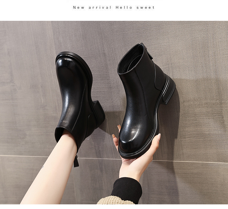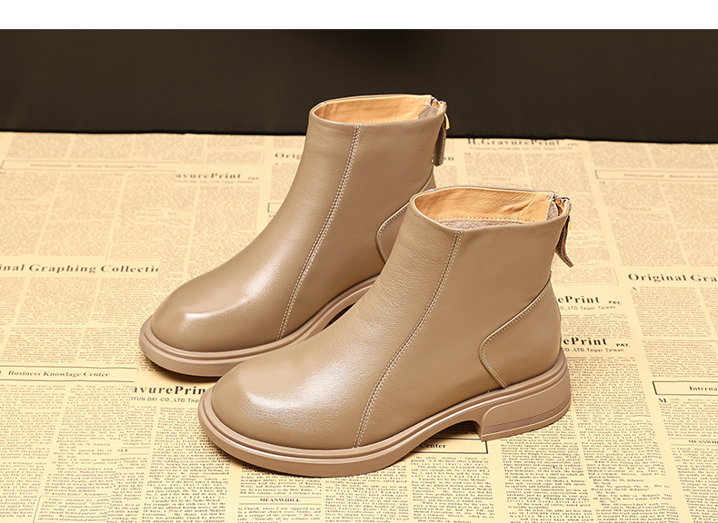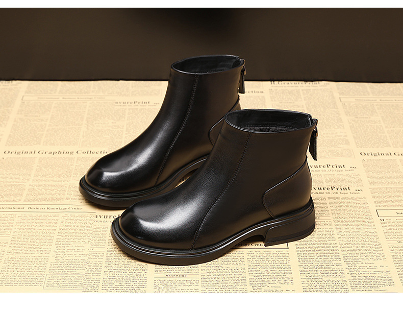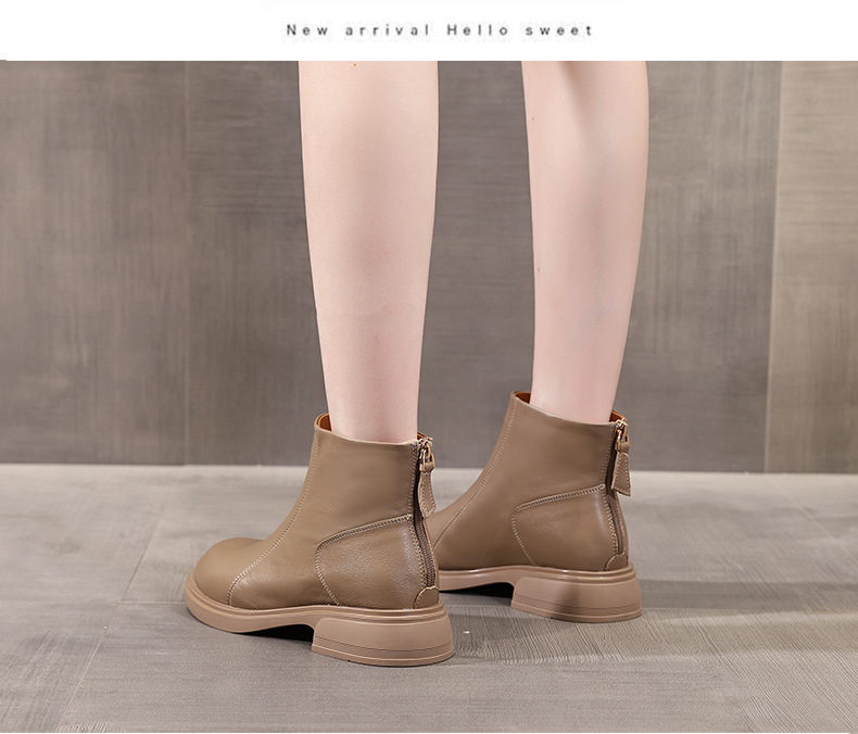 여성을위한 첫 번째 레이어 소 가죽 마틴 부츠 2025 새로운 두꺼운 밑창 여성 부츠 가을, 겨울 짧은 부츠 여성 두꺼운 뒤꿈치 정품 가죽 부츠스토어 가기