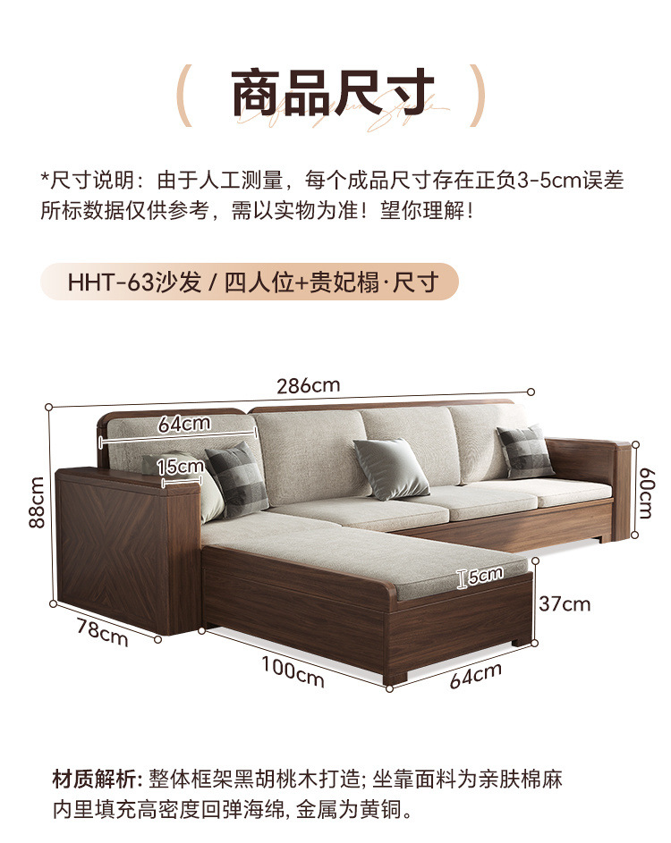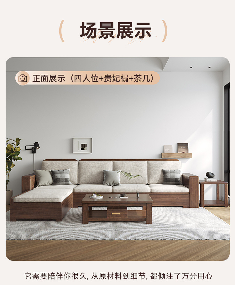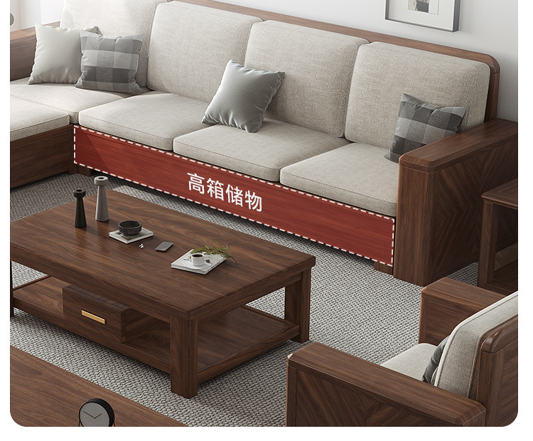 남미 직접 판매 검은 호두 현대 간단한 제국 첩의 소파 겨울과 여름 이중 사용 단단한 나무 소파 조합 높은 상자 소파스토어 가기