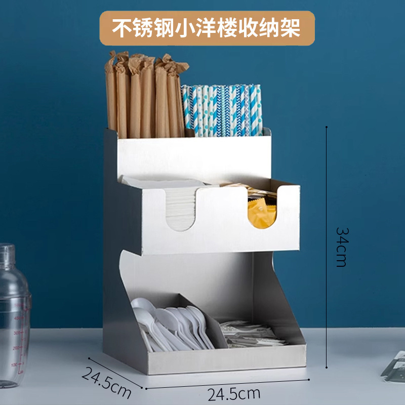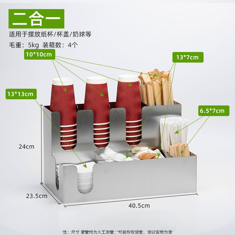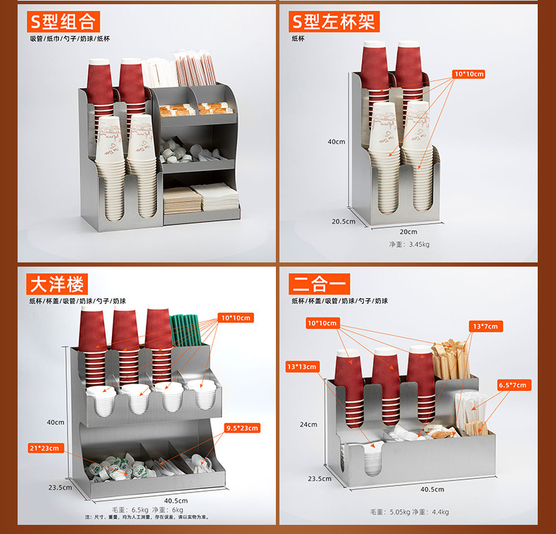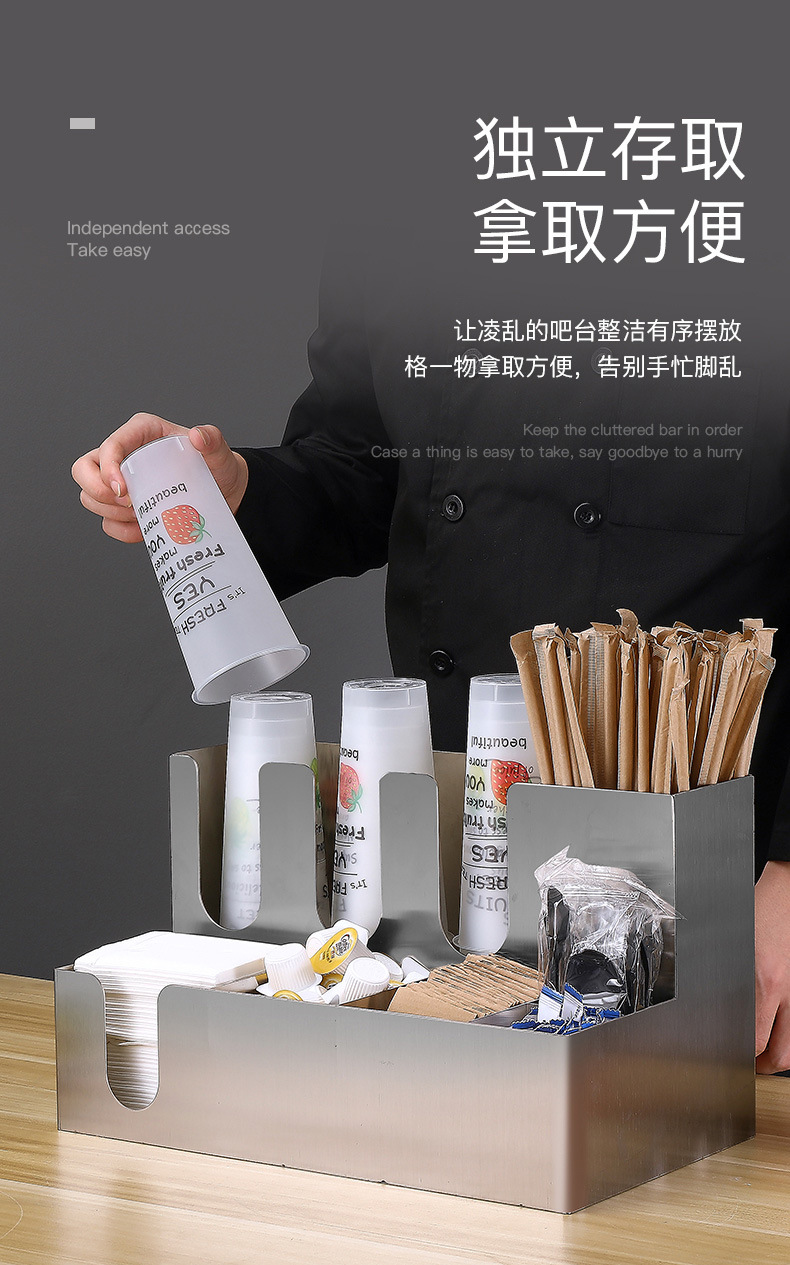 국경 독점 소스 스테인레스 스틸 시리즈 다기능 상업용 우유 차 컵 홀더 종이 컵 바 저장 흡입 튜브 상자