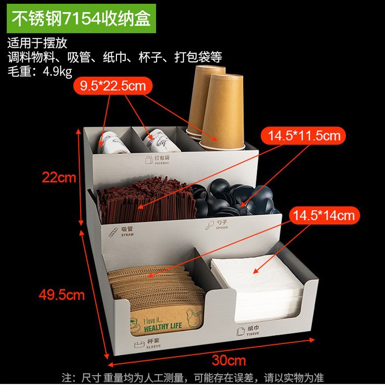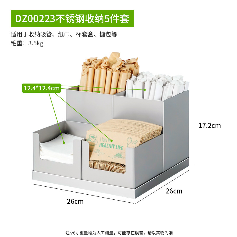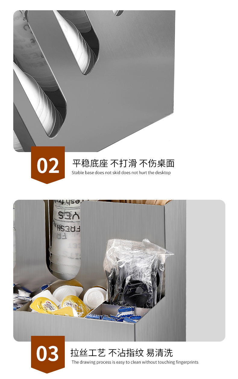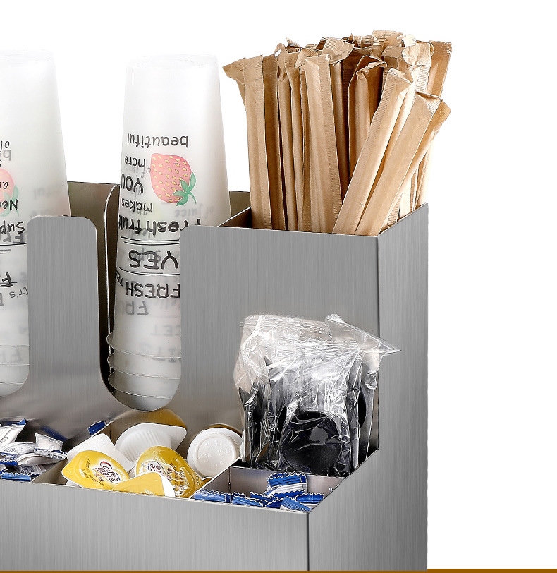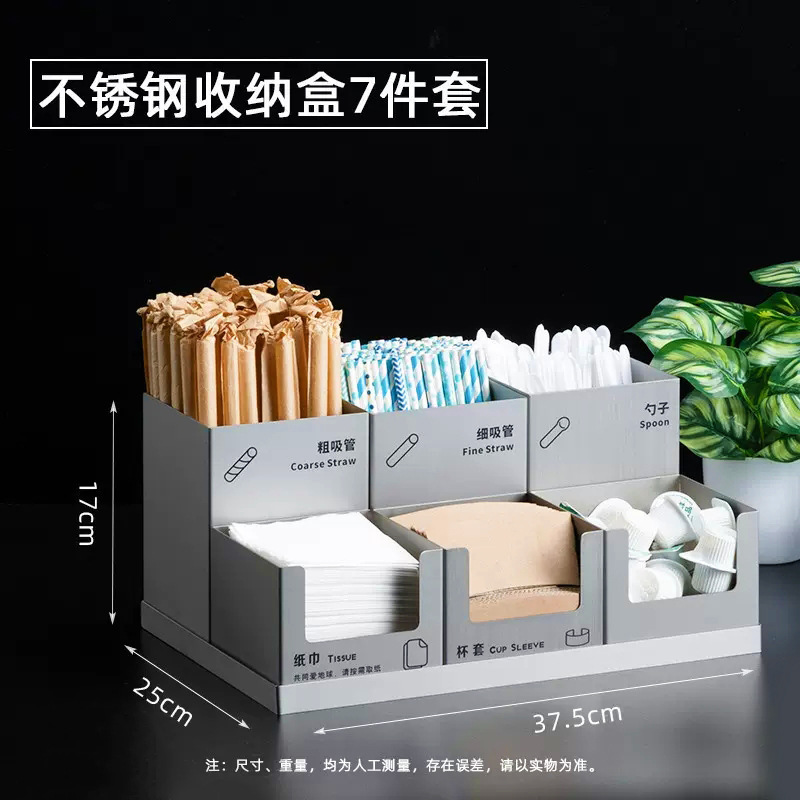 국경 독점 소스 스테인레스 스틸 시리즈 다기능 상업용 우유 차 컵 홀더 종이 컵 바 저장 흡입 튜브 상자