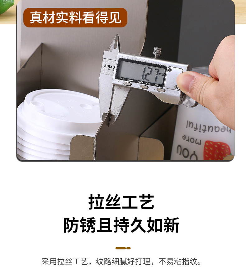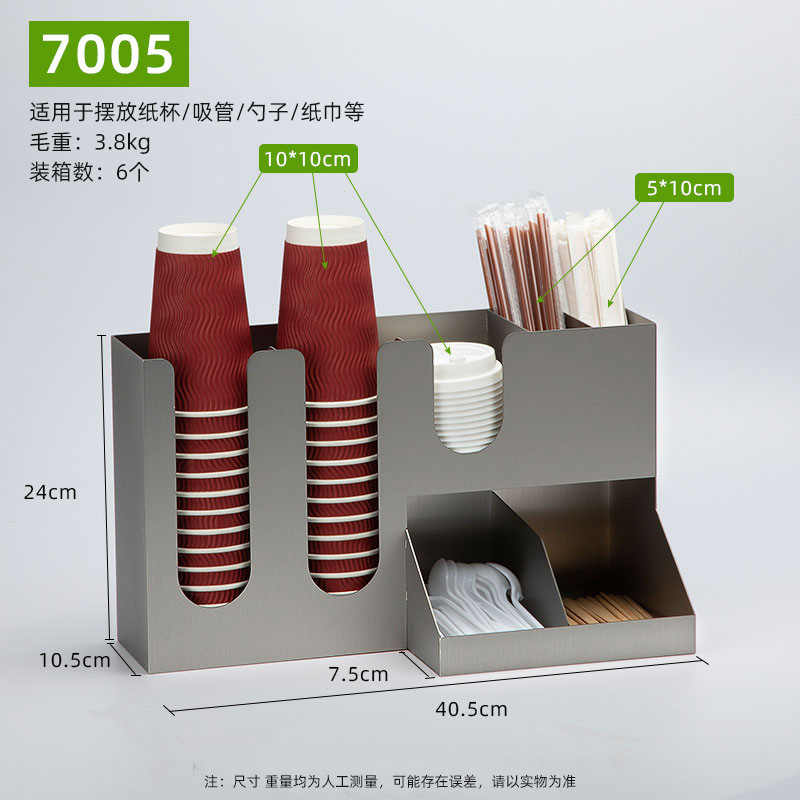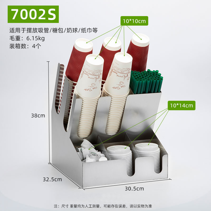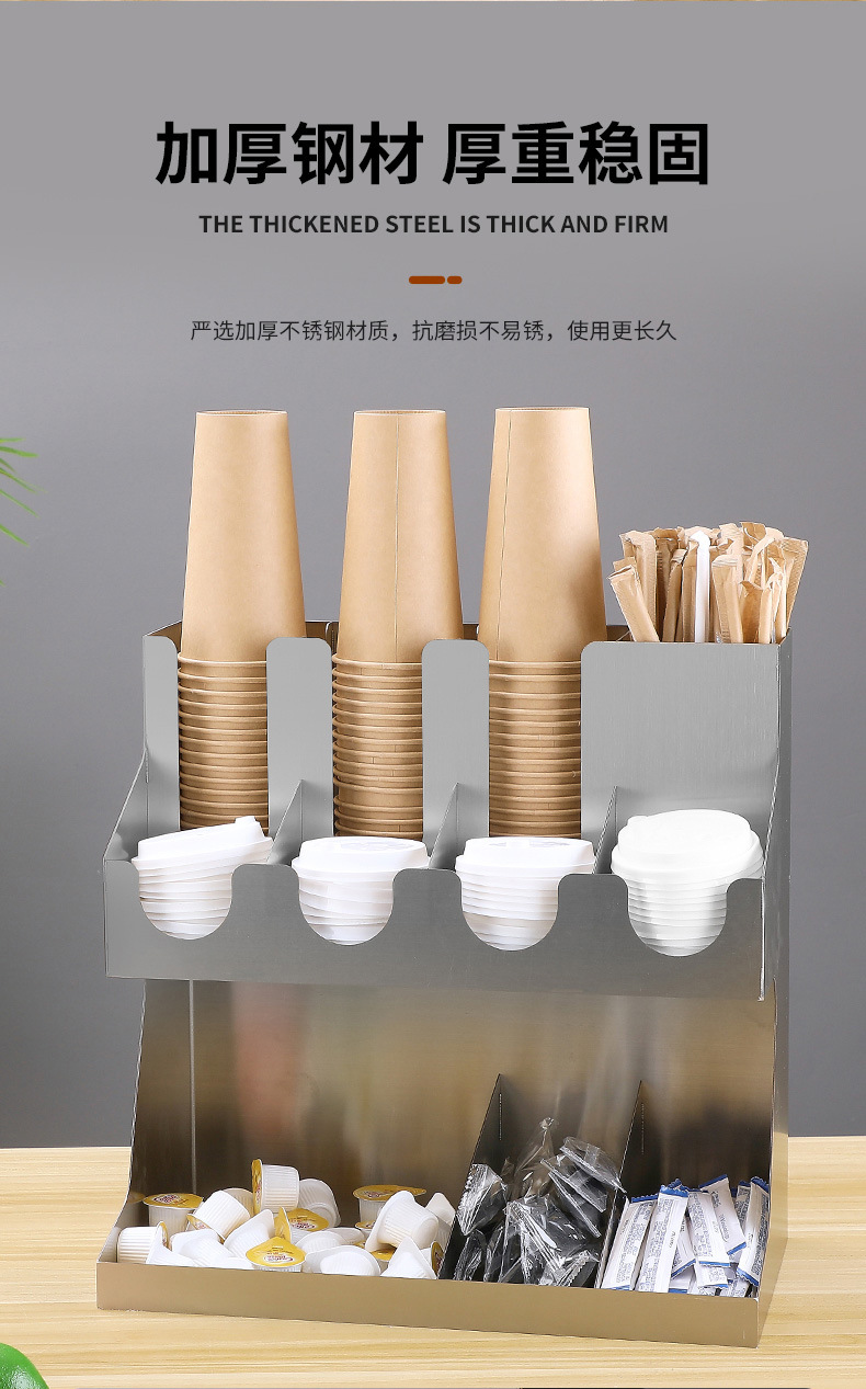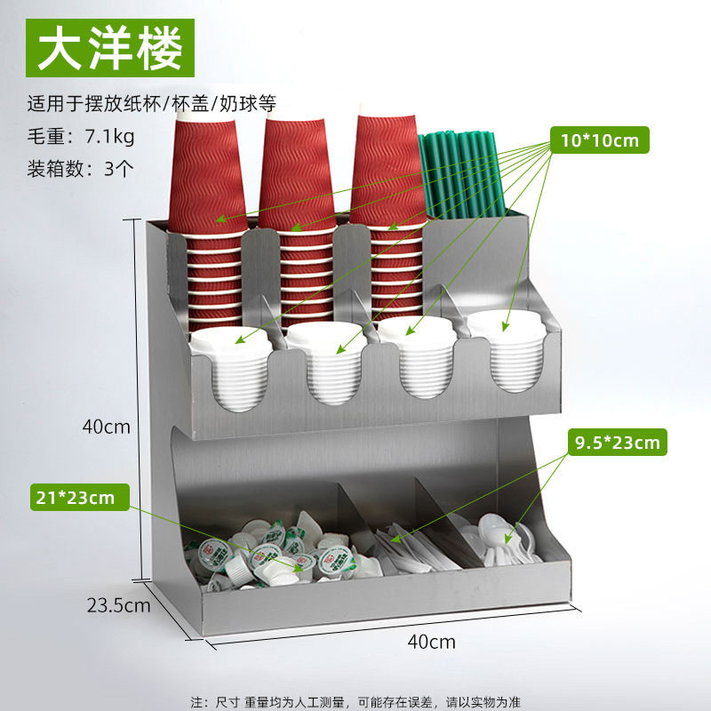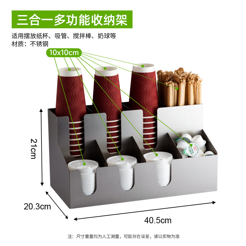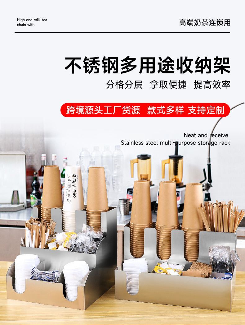 국경 독점 소스 스테인레스 스틸 시리즈 다기능 상업용 우유 차 컵 홀더 종이 컵 바 저장 흡입 튜브 상자스토어 가기