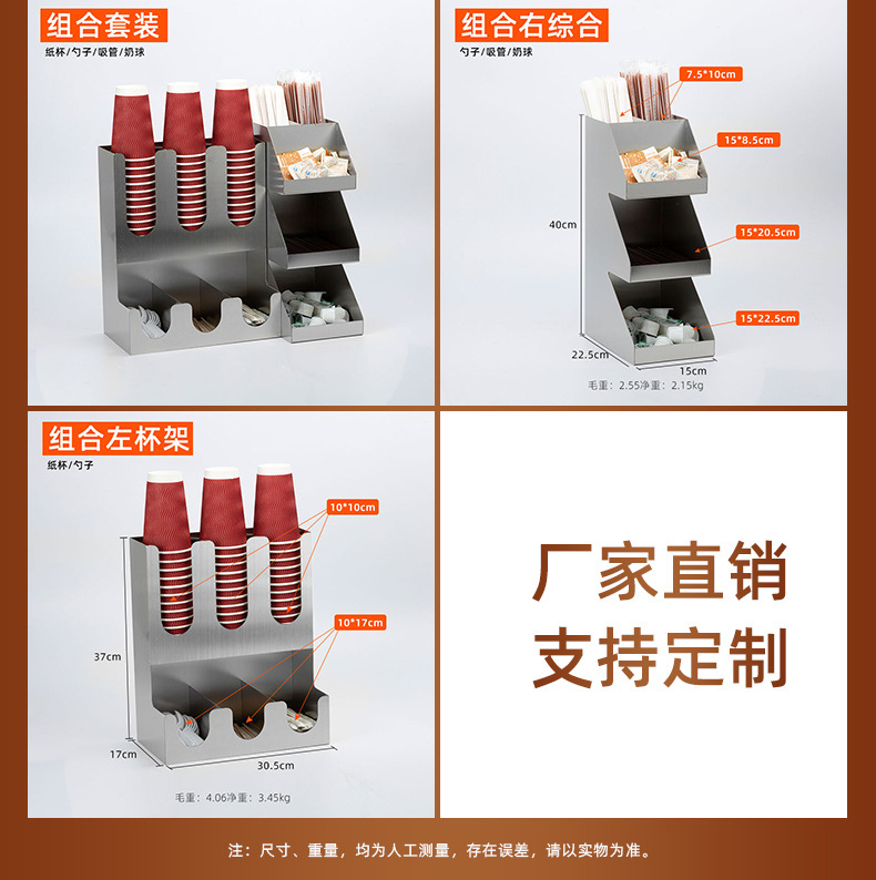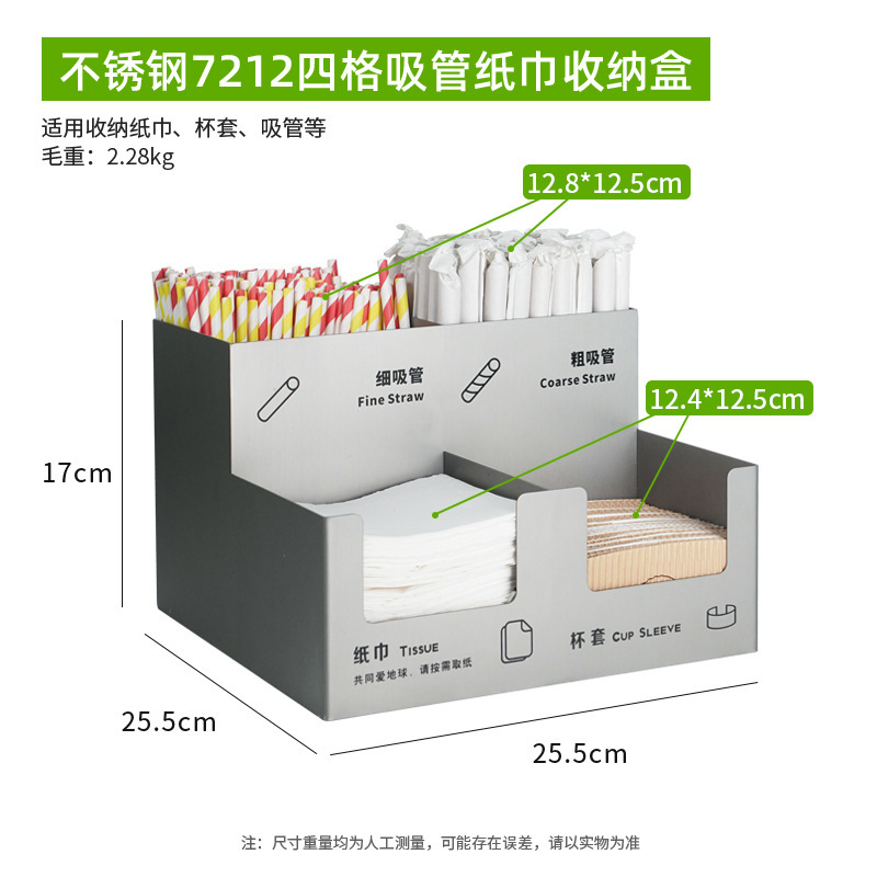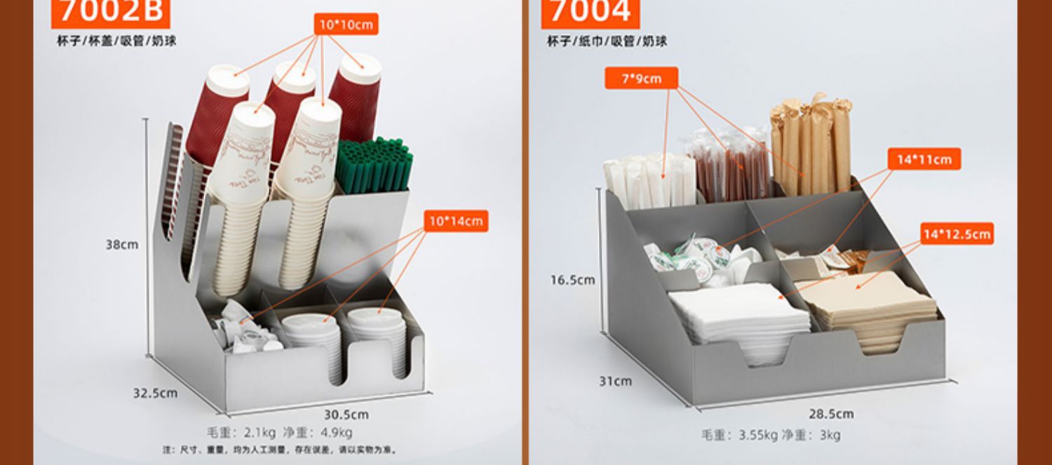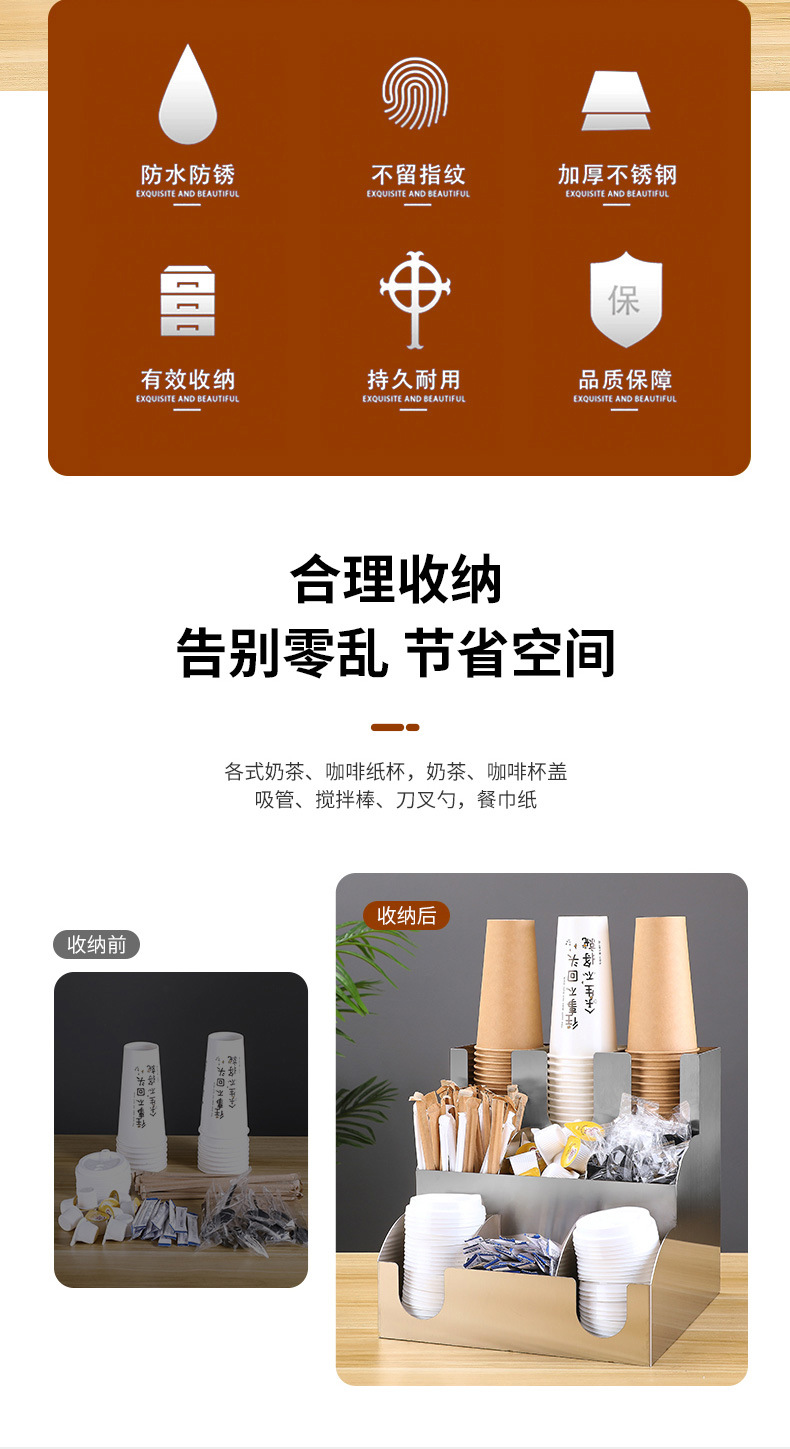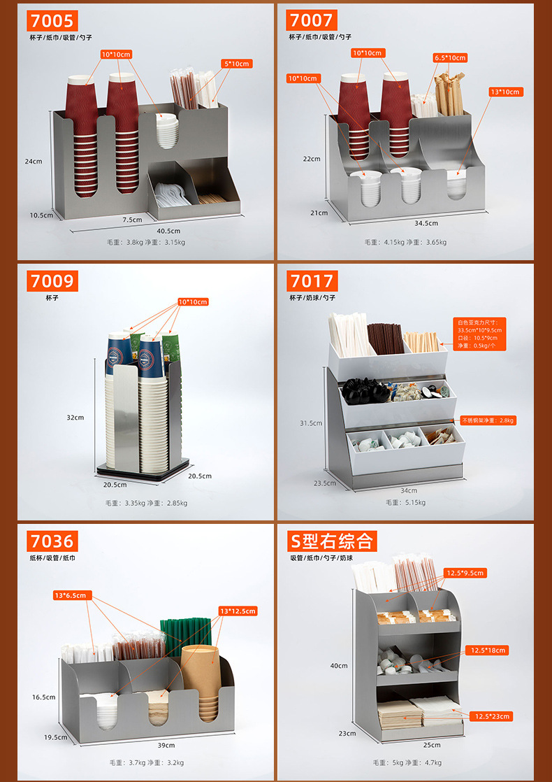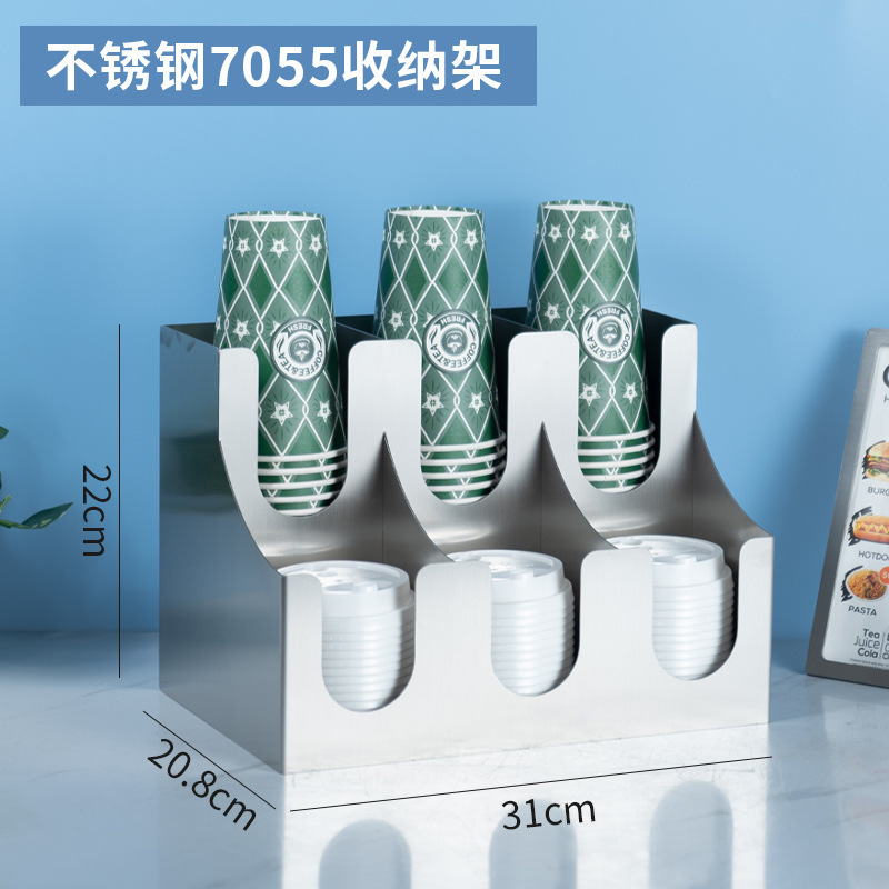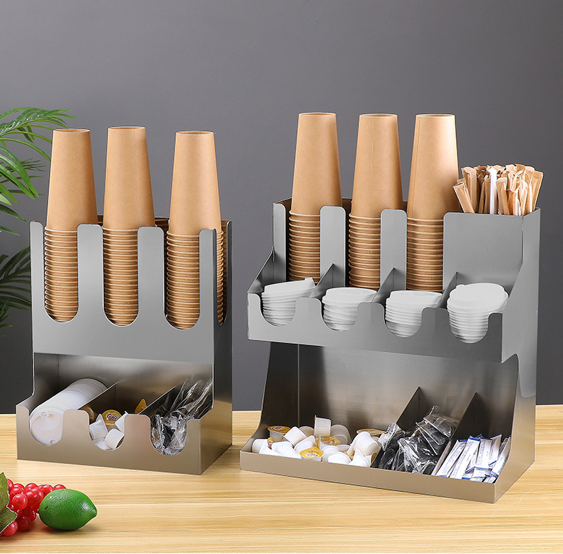 국경 독점 소스 스테인레스 스틸 시리즈 다기능 상업용 우유 차 컵 홀더 종이 컵 바 저장 흡입 튜브 상자스토어 가기
