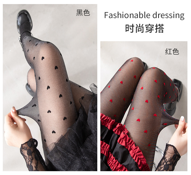 검은 실크 스타킹 여성의 가을과 겨울을위한 가벼운 다리 아티팩트 웨이브 도트 러브 레터 가짜와 진정한 피부 투명베이스 팬티 스타킹