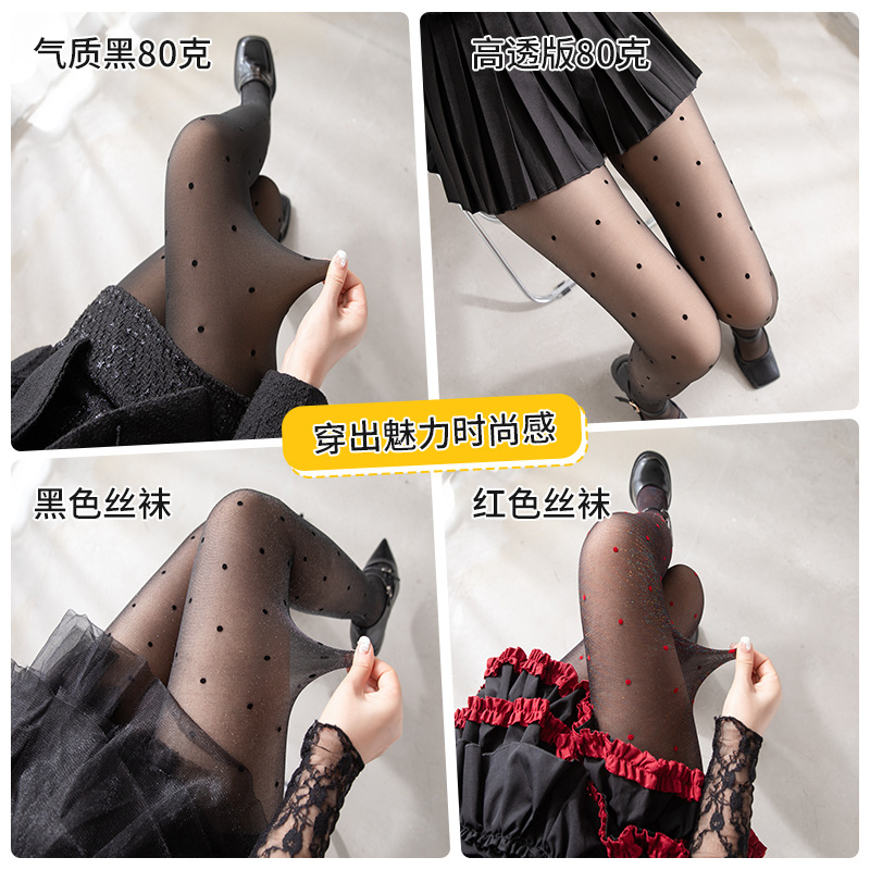 검은 실크 스타킹 여성의 가을과 겨울을위한 가벼운 다리 아티팩트 웨이브 도트 러브 레터 가짜와 진정한 피부 투명베이스 팬티 스타킹스토어 가기