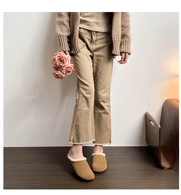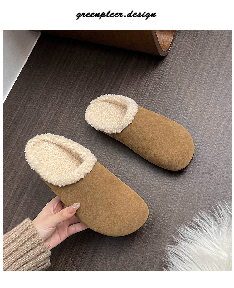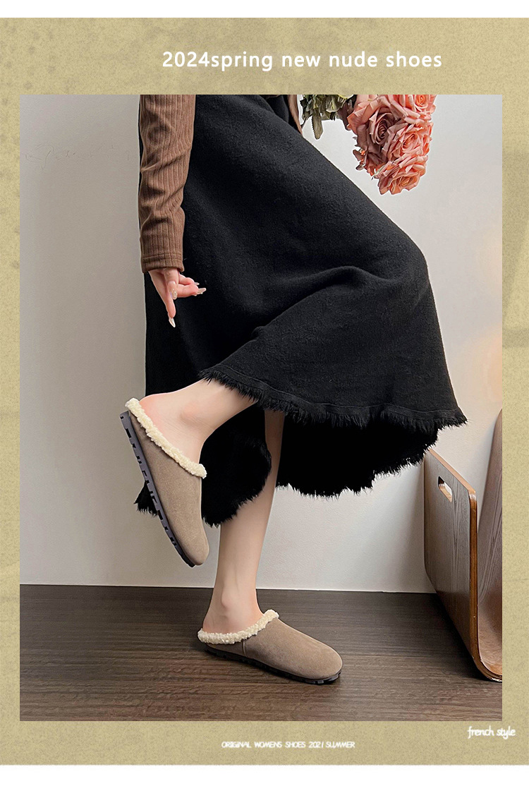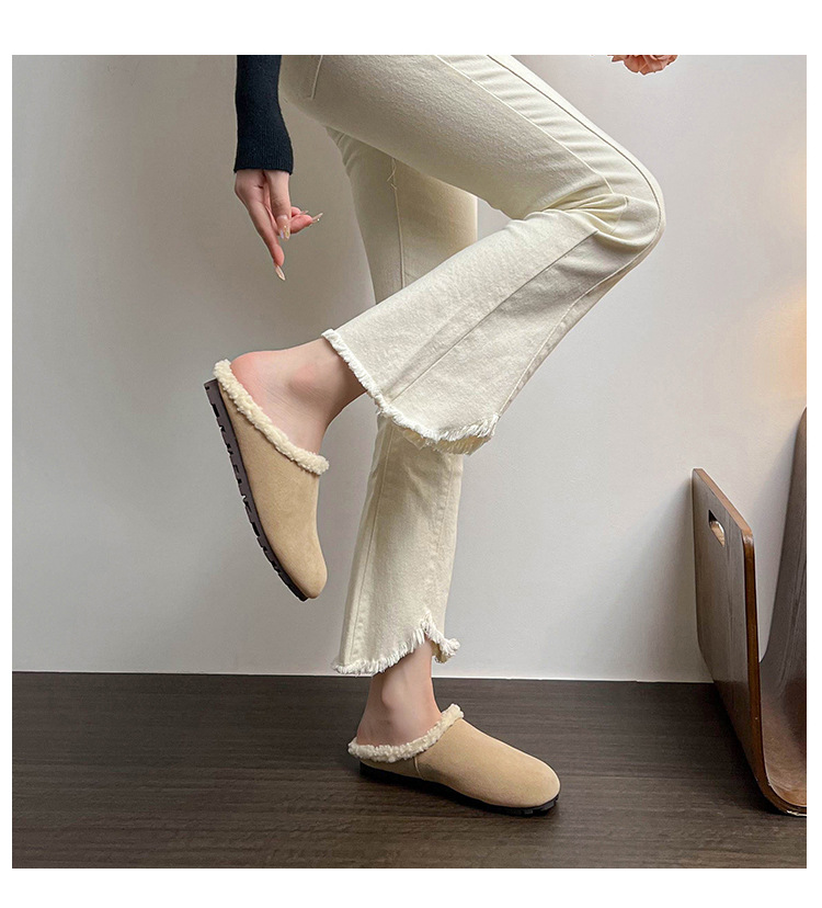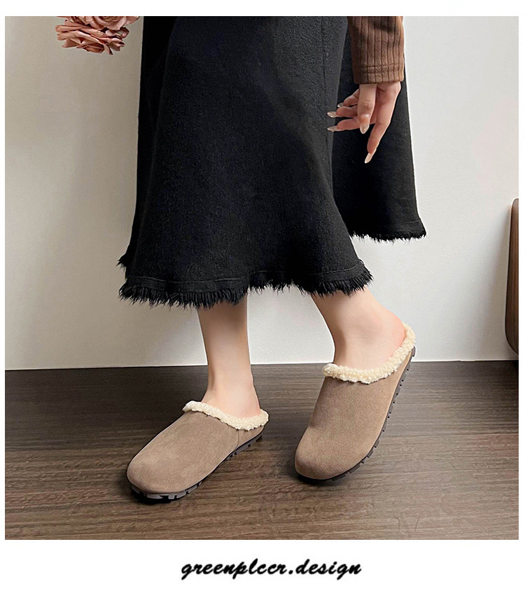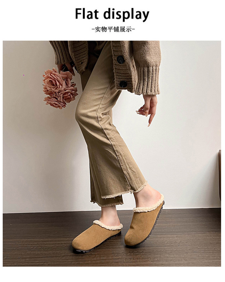 Maomao Birken 신발 여성의 2023 새로운 가을과 겨울 슬립 온 기모 Baotou 신발 여성을위한 플랫 바닥 면 슬리퍼