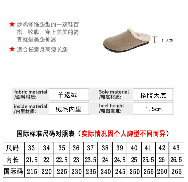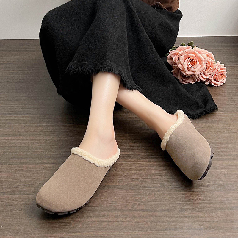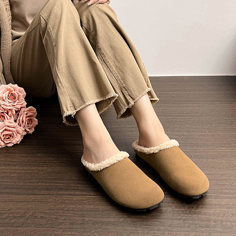 Maomao Birken 신발 여성의 2023 새로운 가을과 겨울 슬립 온 기모 Baotou 신발 여성을위한 플랫 바닥 면 슬리퍼스토어 가기
