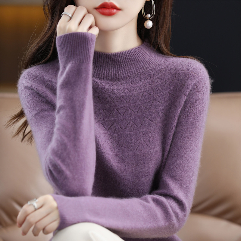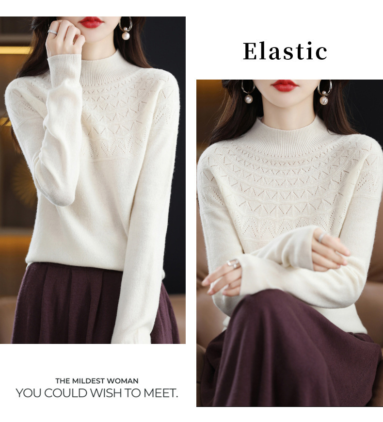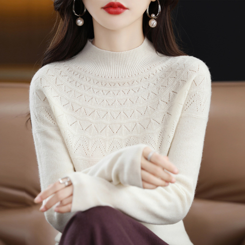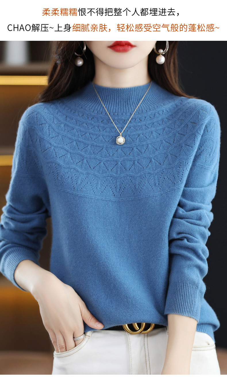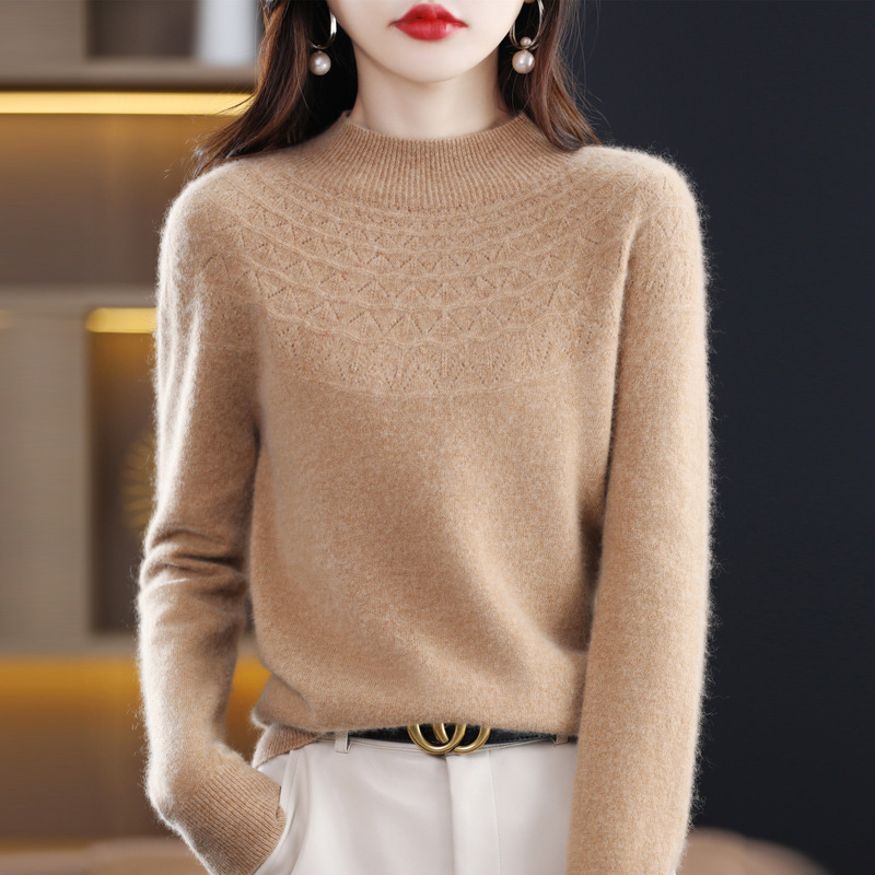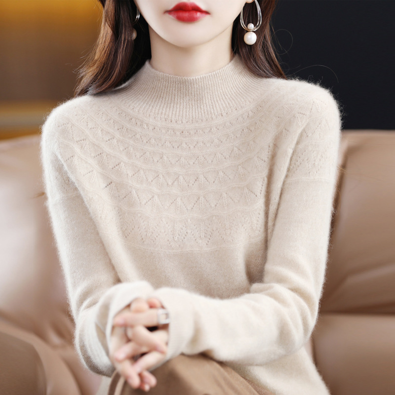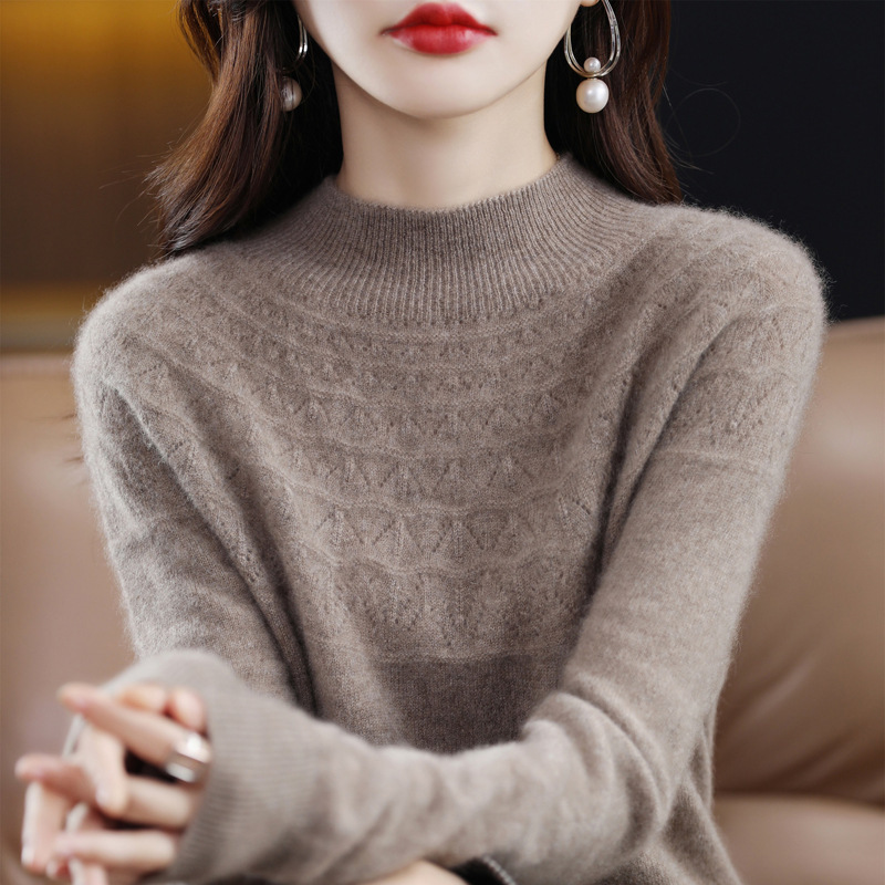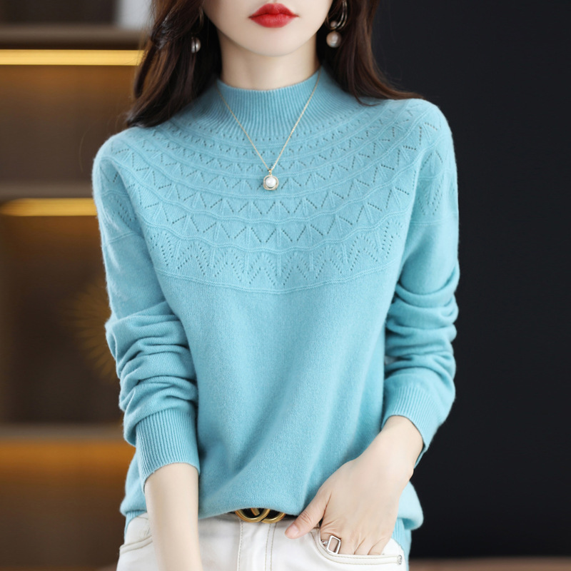 첫 번째 라인 기성복 니트웨어 스웨터 흔들리는 소리 느슨한 가을과 겨울 속이 빈 여성용 니트 베이스 셔츠 하프 하이 칼라 세대 헤어스토어 가기