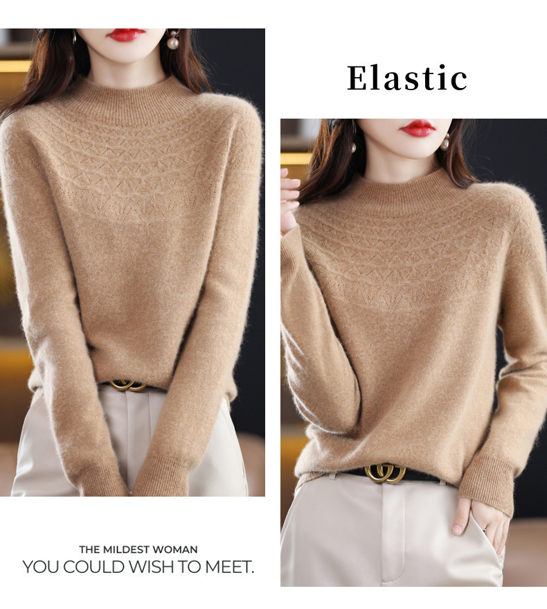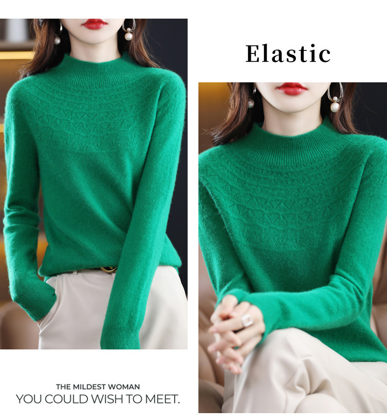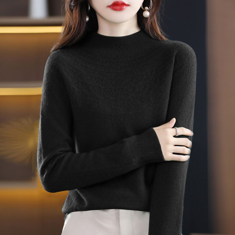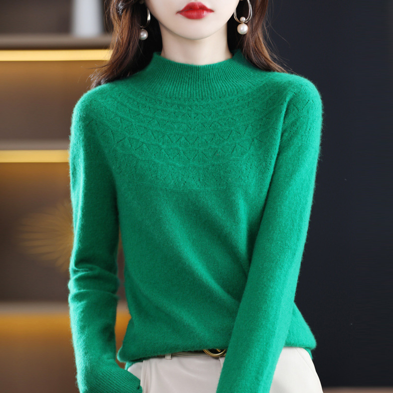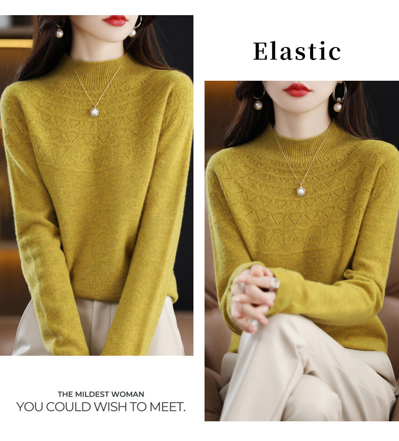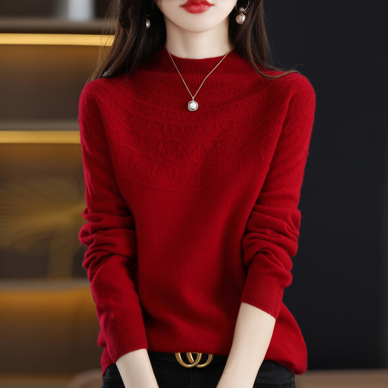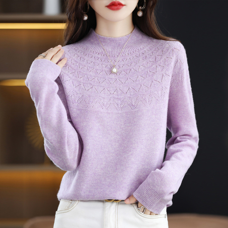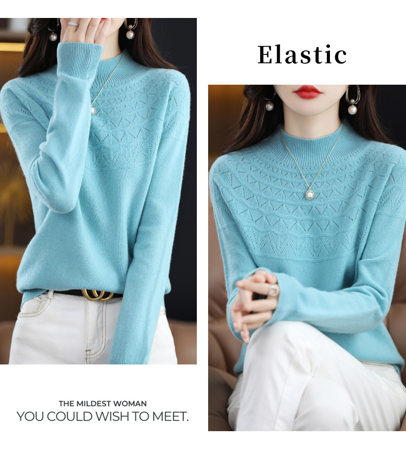 첫 번째 라인 기성복 니트웨어 스웨터 흔들리는 소리 느슨한 가을과 겨울 속이 빈 여성용 니트 베이스 셔츠 하프 하이 칼라 세대 헤어스토어 가기