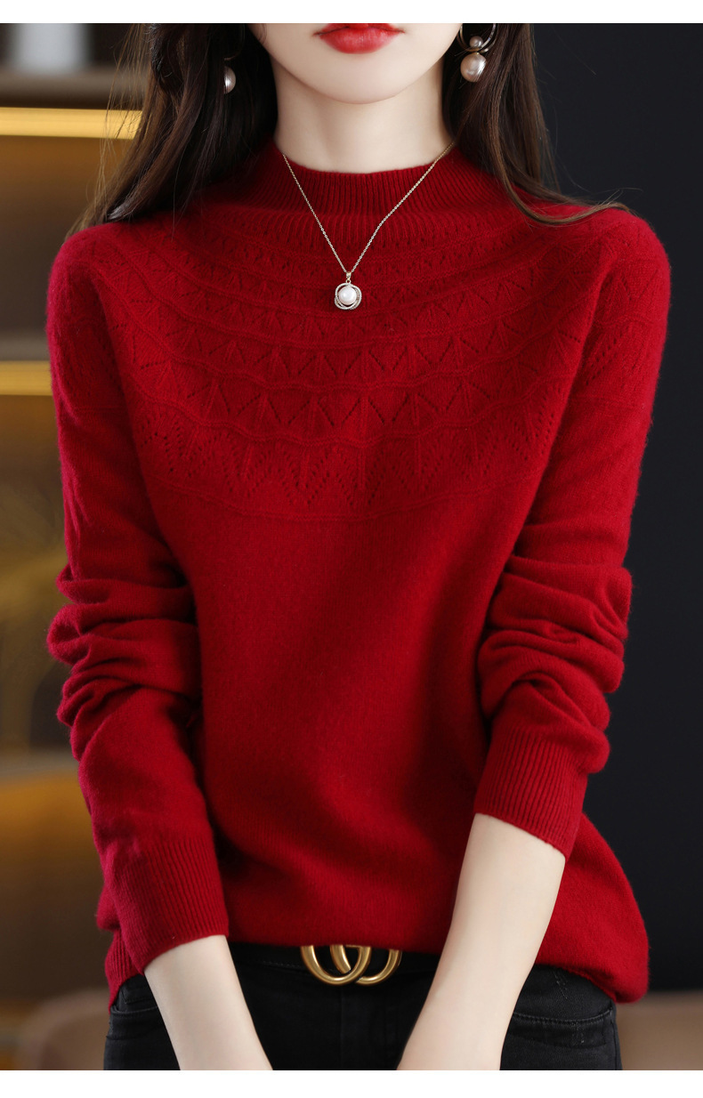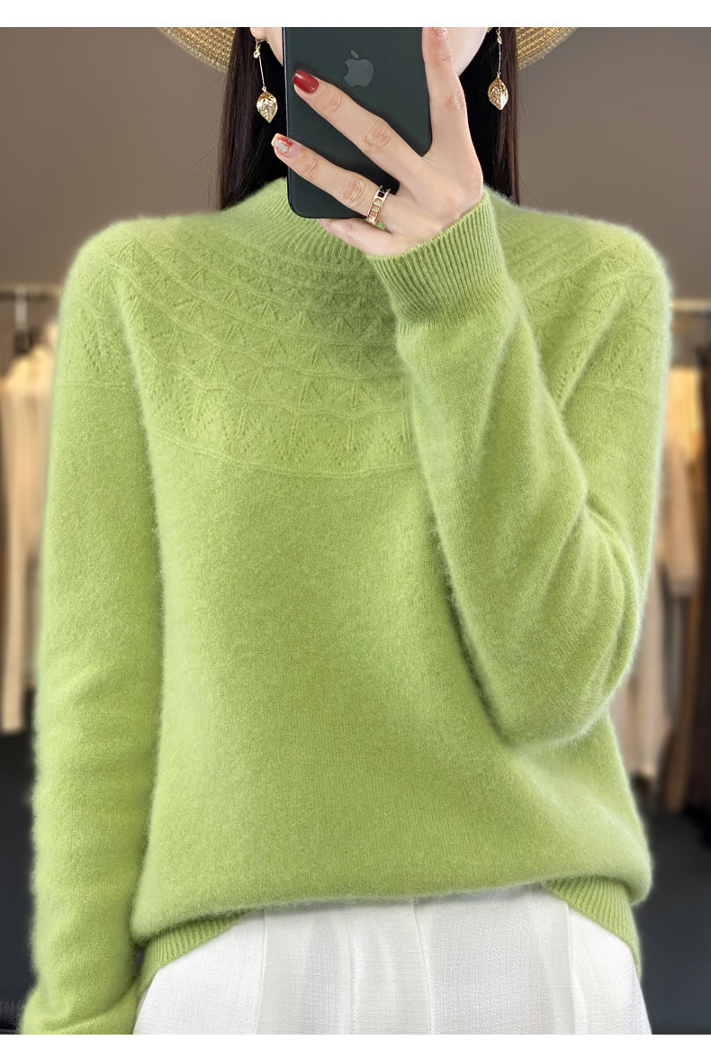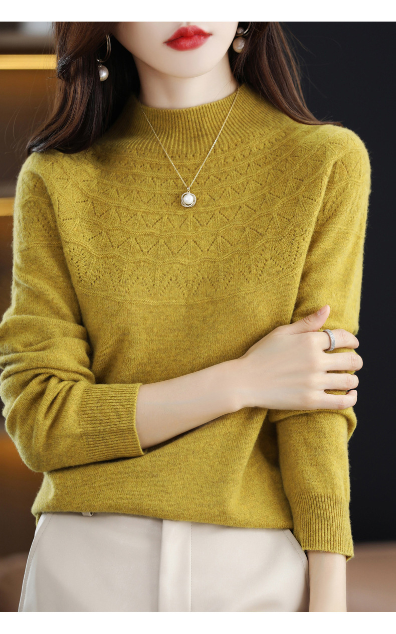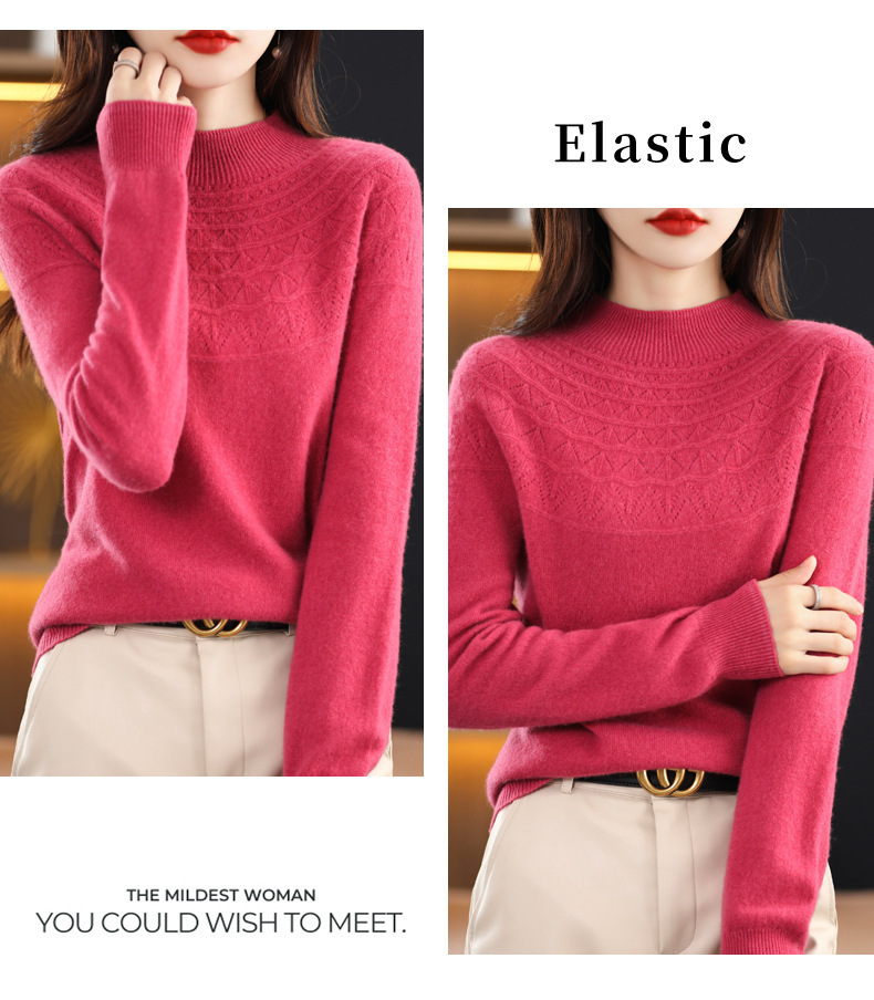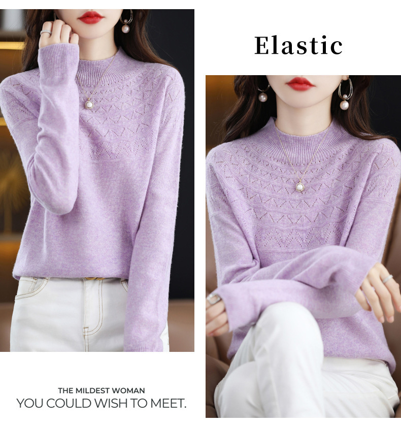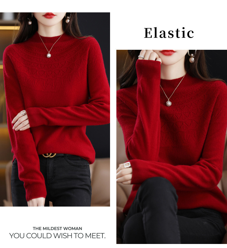 첫 번째 라인 기성복 니트웨어 스웨터 흔들리는 소리 느슨한 가을과 겨울 속이 빈 여성용 니트 베이스 셔츠 하프 하이 칼라 세대 헤어스토어 가기