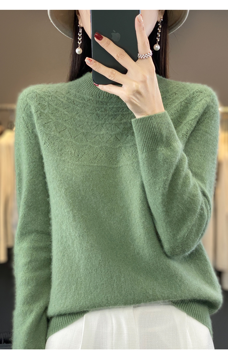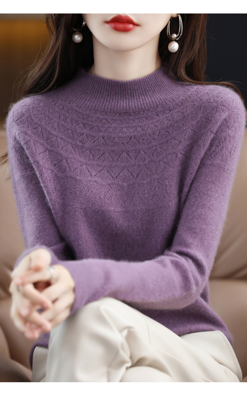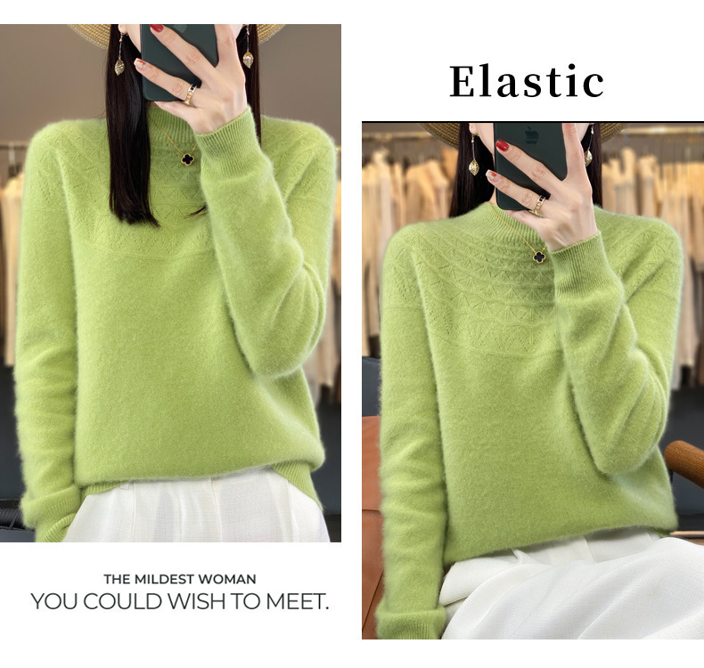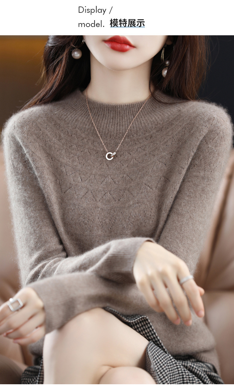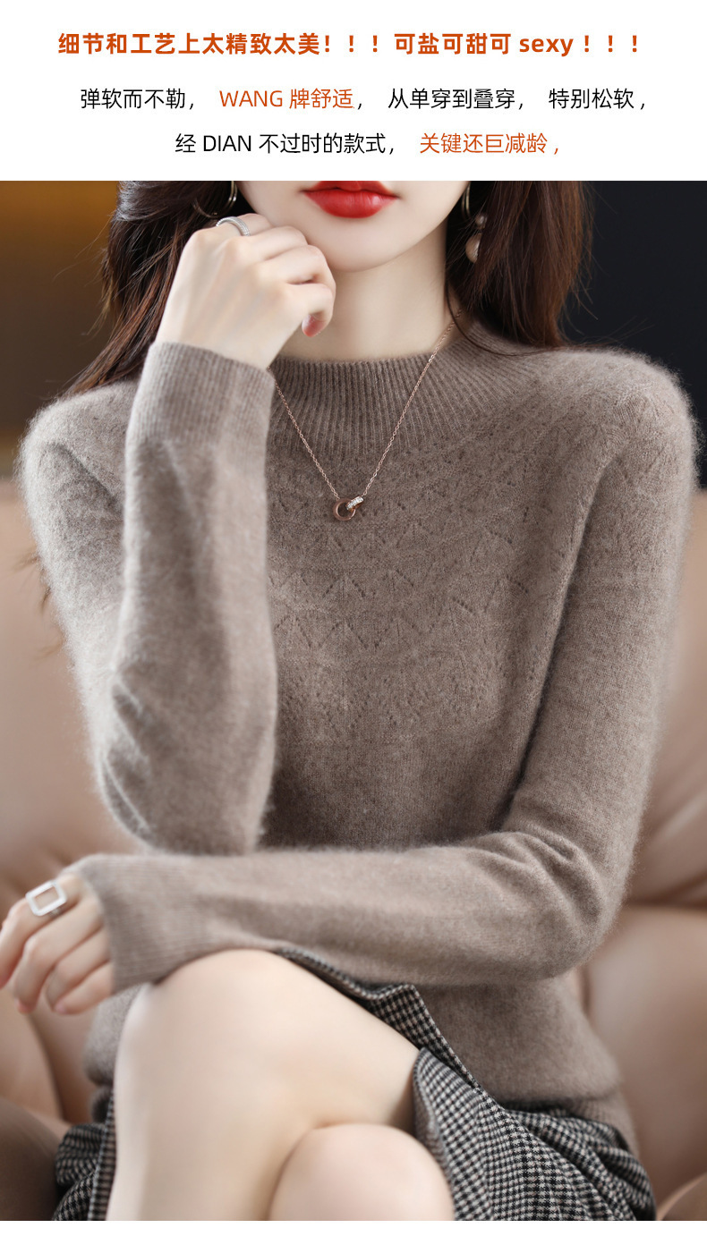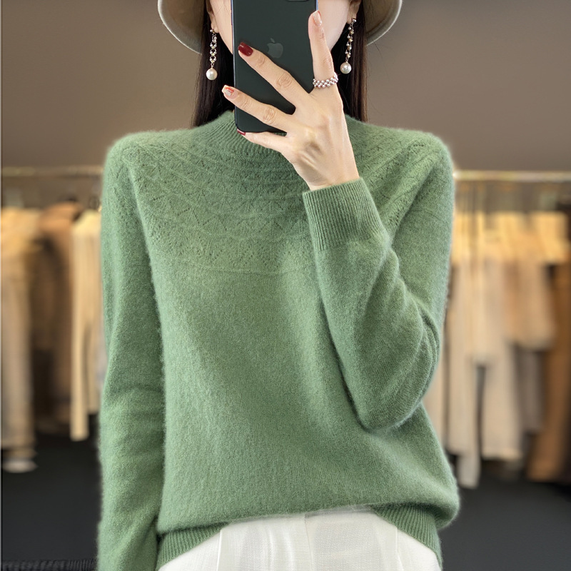 첫 번째 라인 기성복 니트웨어 스웨터 흔들리는 소리 느슨한 가을과 겨울 속이 빈 여성용 니트 베이스 셔츠 하프 하이 칼라 세대 헤어