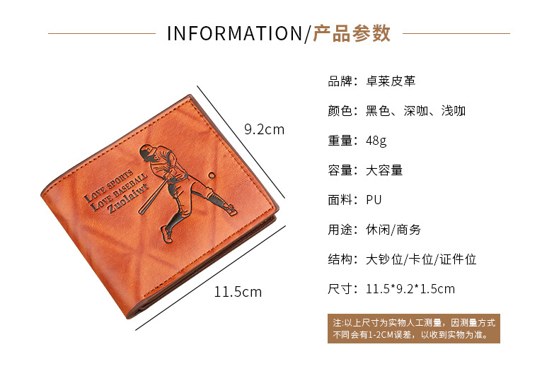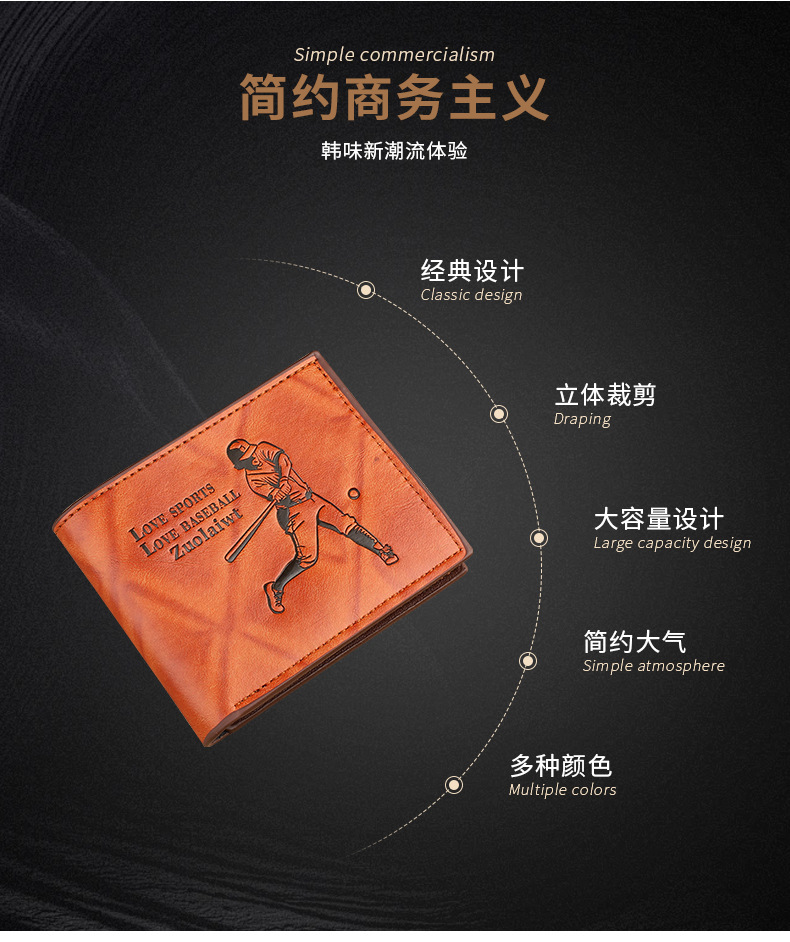 국경 간 유럽과 미국식 야구 선수 캐릭터 남성 지갑 짧은 대용량 20% 할인 동전 가방 멀티 카드 작은 지갑