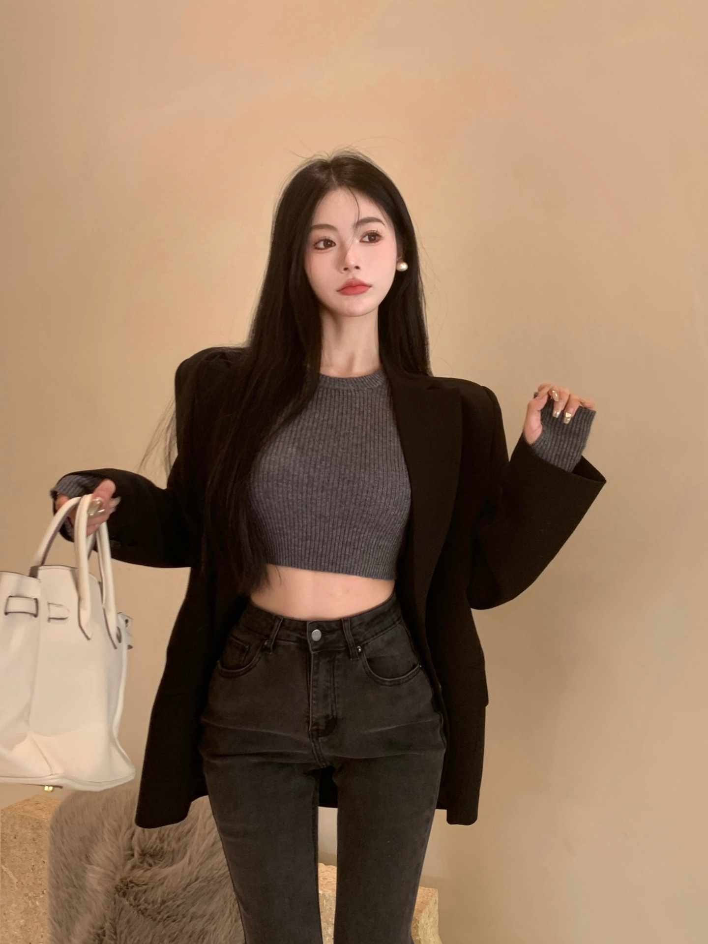 여성용 긴팔 니트베이스 셔츠 2024 여성용 슬림핏 슬리밍 쇼트 탑이있는 새로운 소프트 왁스 스웨터스토어 가기
